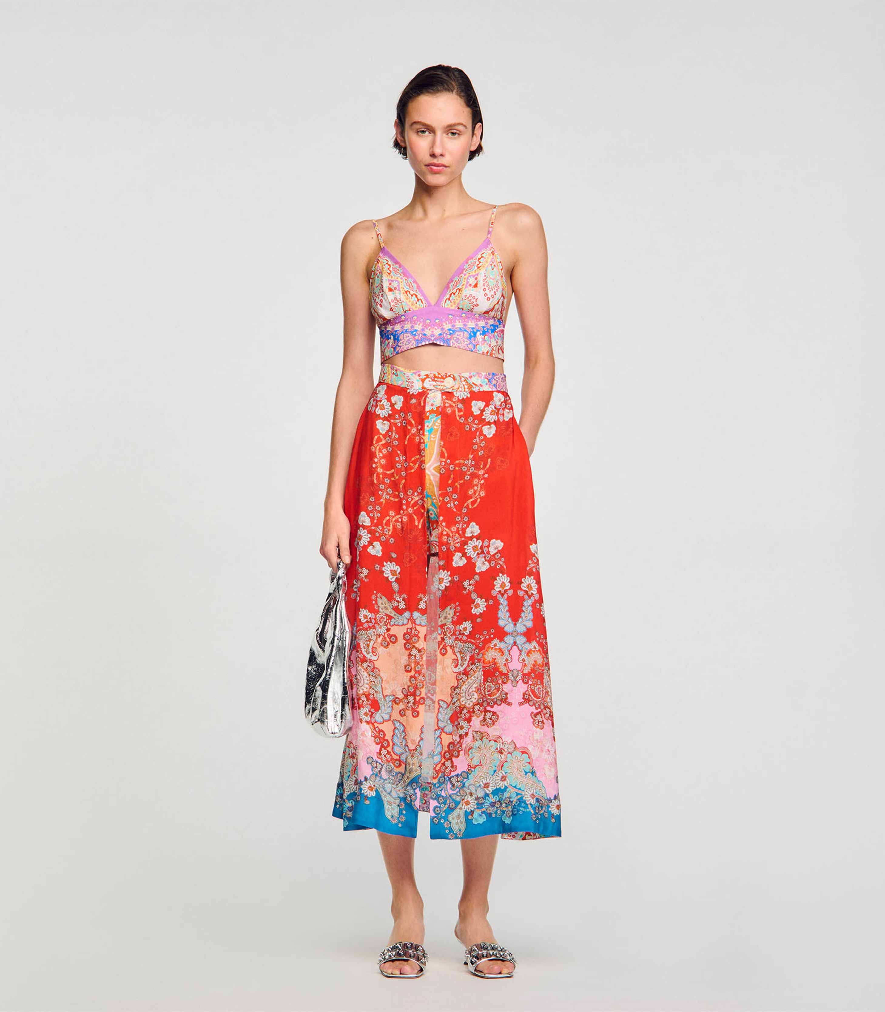 SANDRO - Women's Darwin Floral Trousers Pink Ecru
