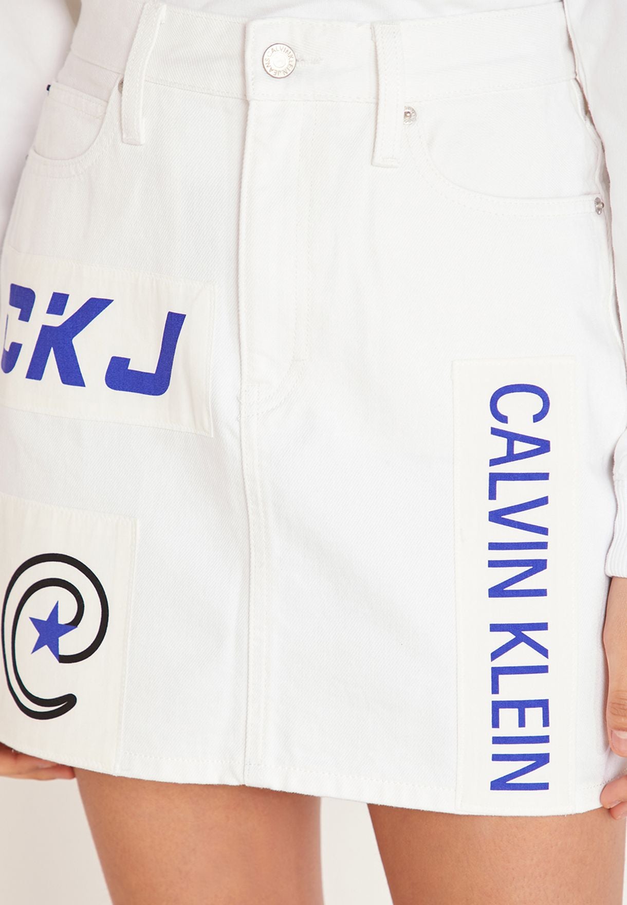 Calvin klein jeans - high rise mini skirt , 27 , bmx patch white , style j20j210903