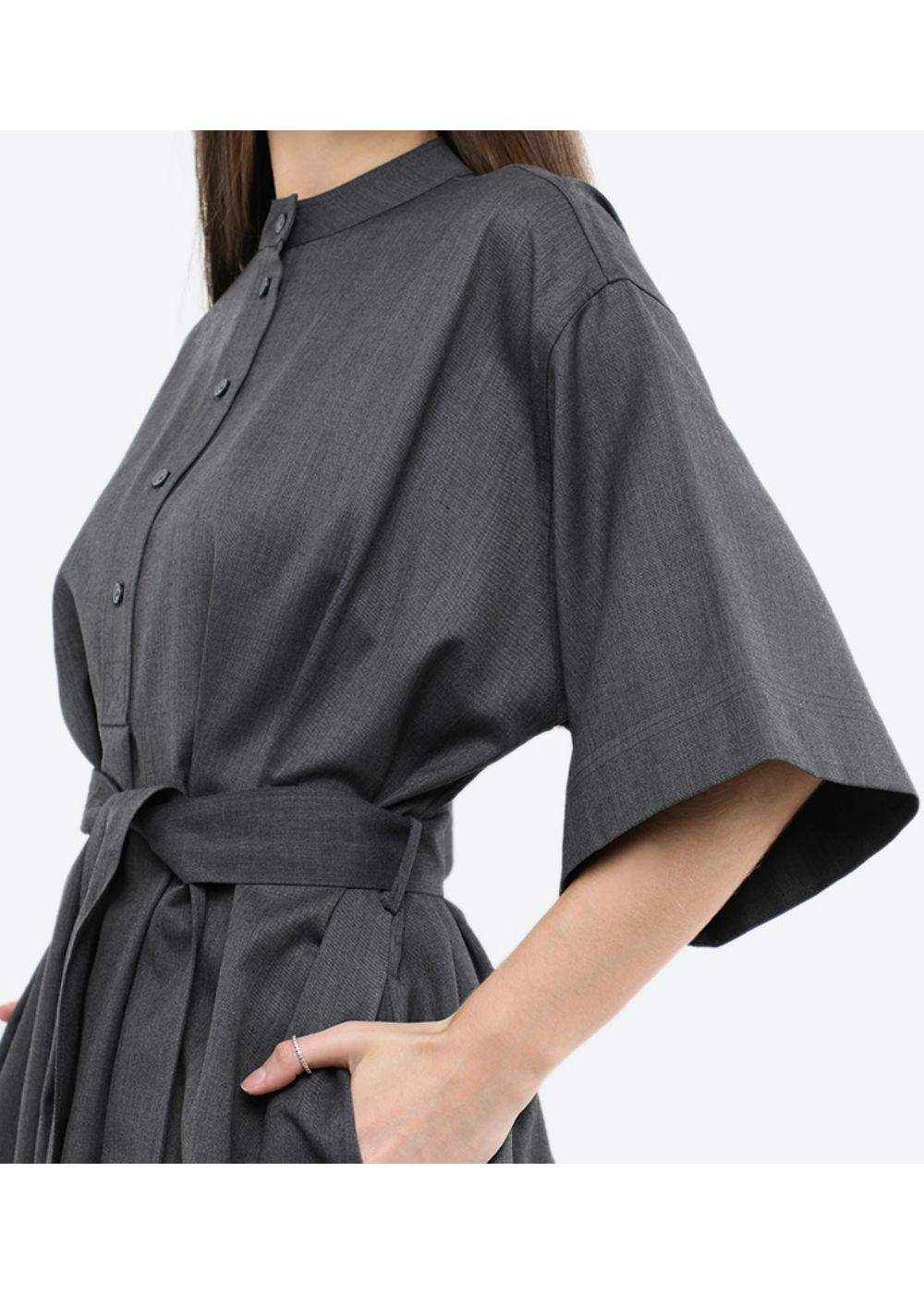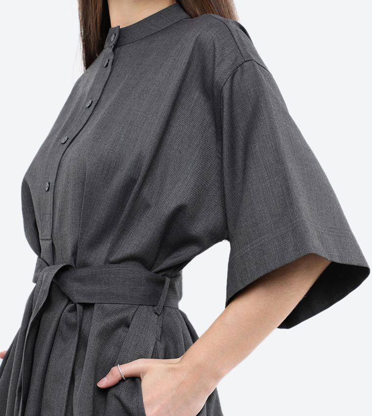Calvin klein - wool flannel belted shirt dress