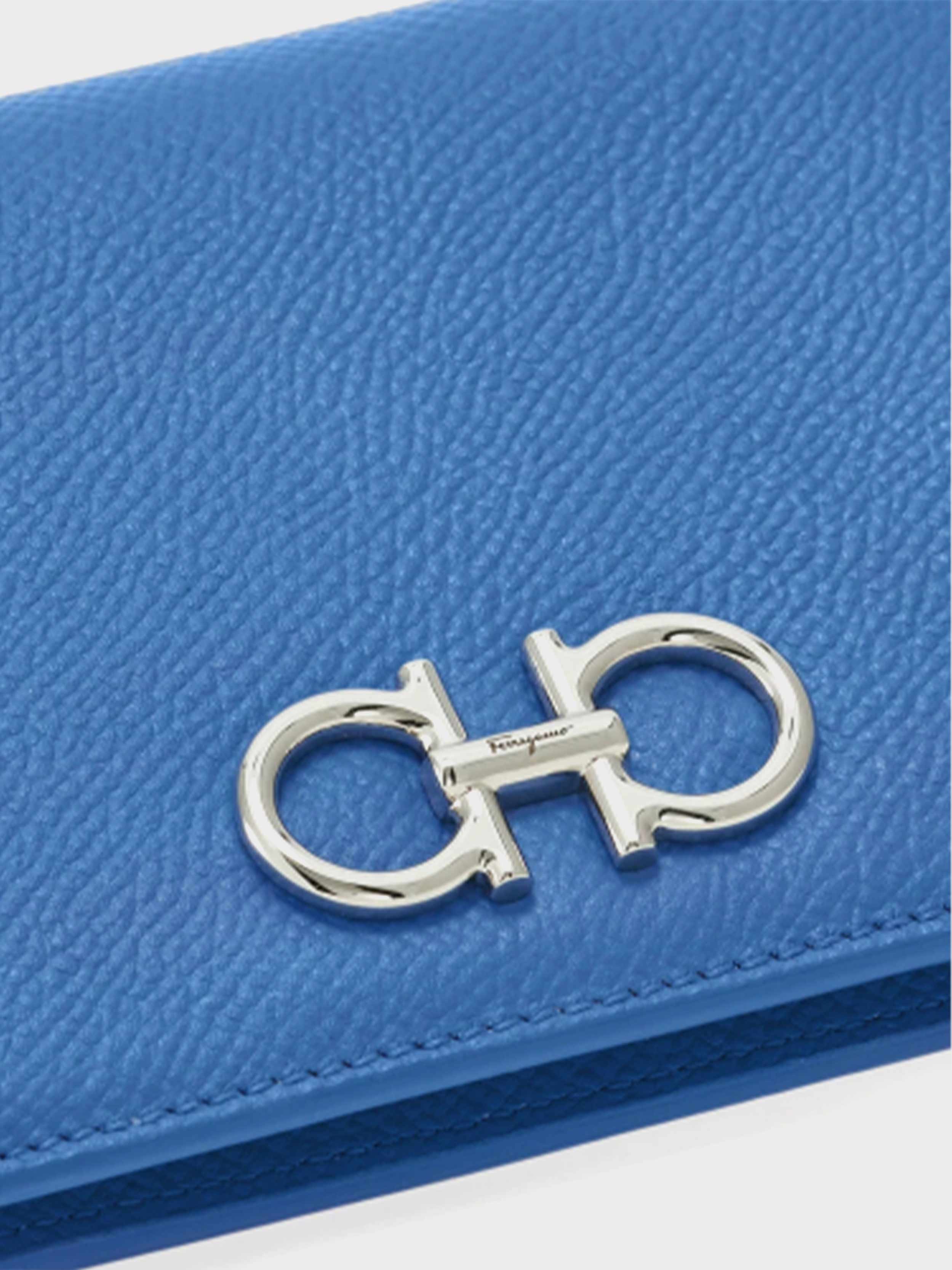 • Compact, elegant, and functional, this French wallet is made of hammered calfskin leather with a fine grainy texture. The signature Gancini buckle in an antique gold hue adds a striking touch of luxe, while the neatly organized interior has bill compartments, slit pockets, and card slots, plus a practical coin pocket with a snap button closure.