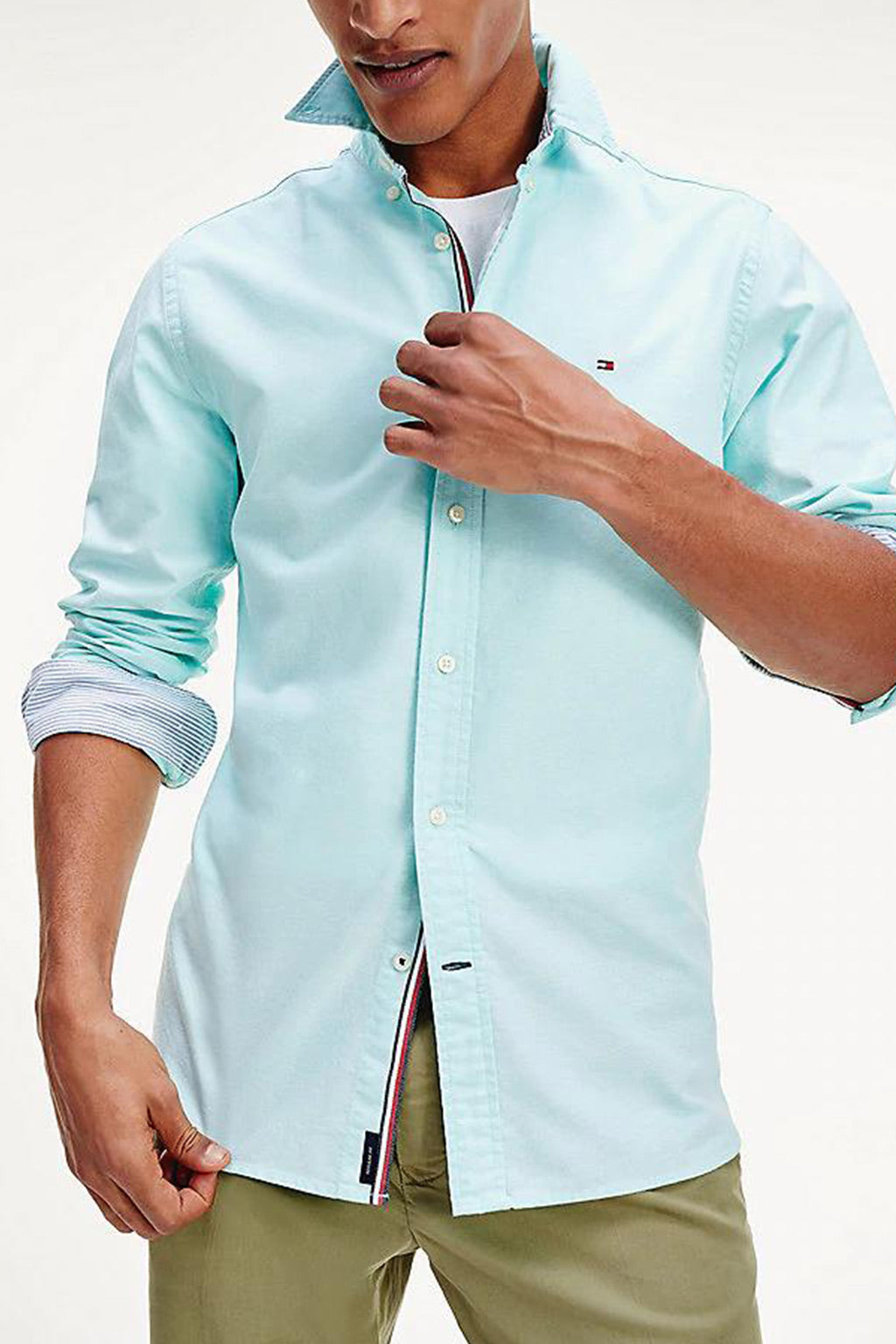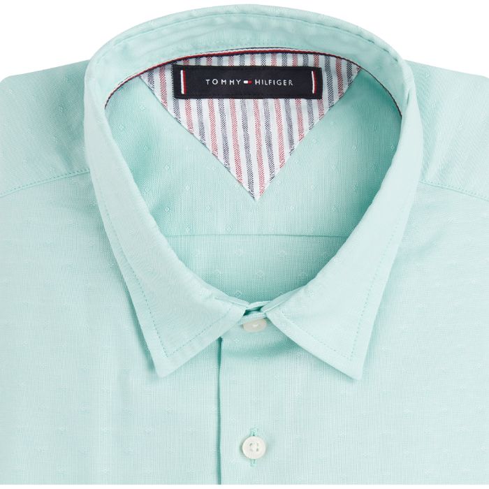 Tommy hilfiger - slim flex spaced out dobby shirt , xs , menthol , style mw0mw12754
