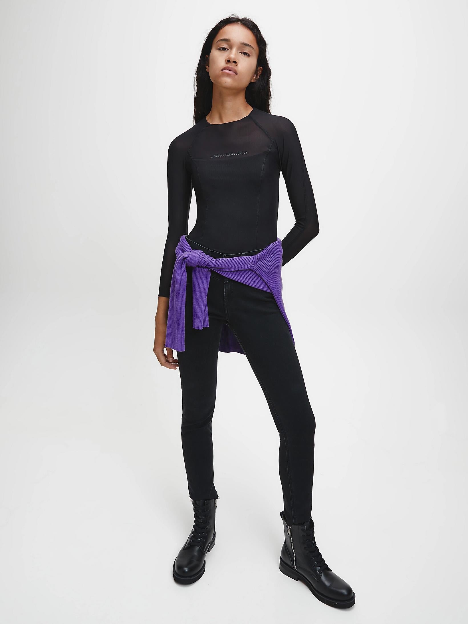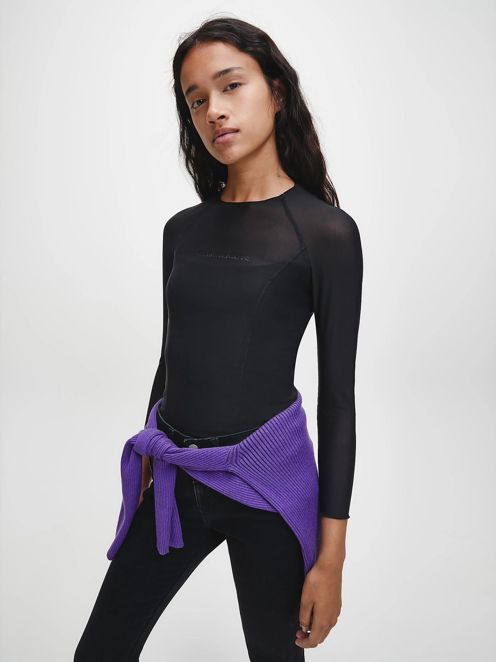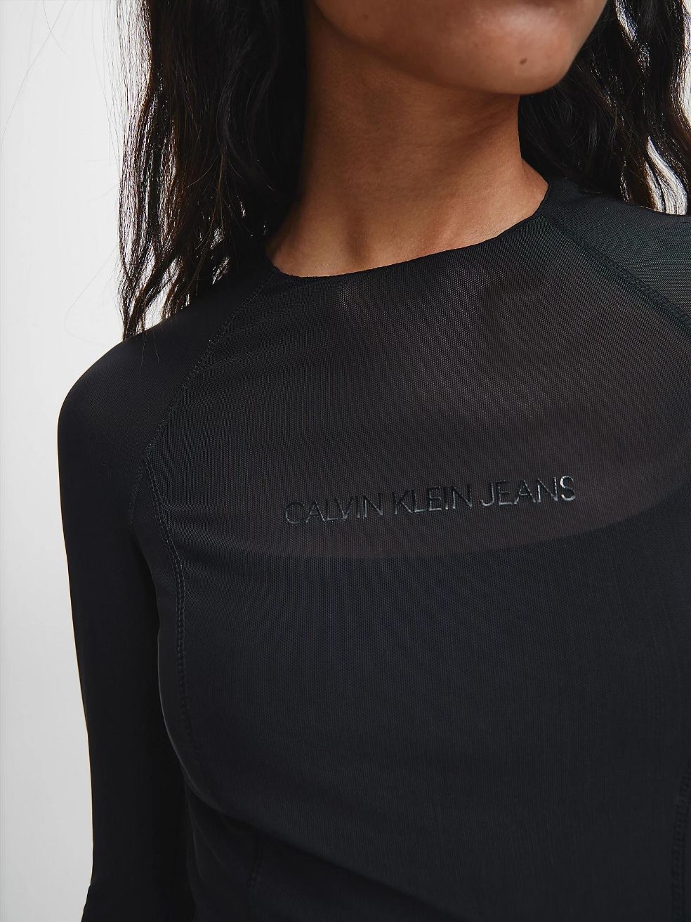 Calvin klein jeans - body-con mesh ls top , s , ck black , style j20j214884
