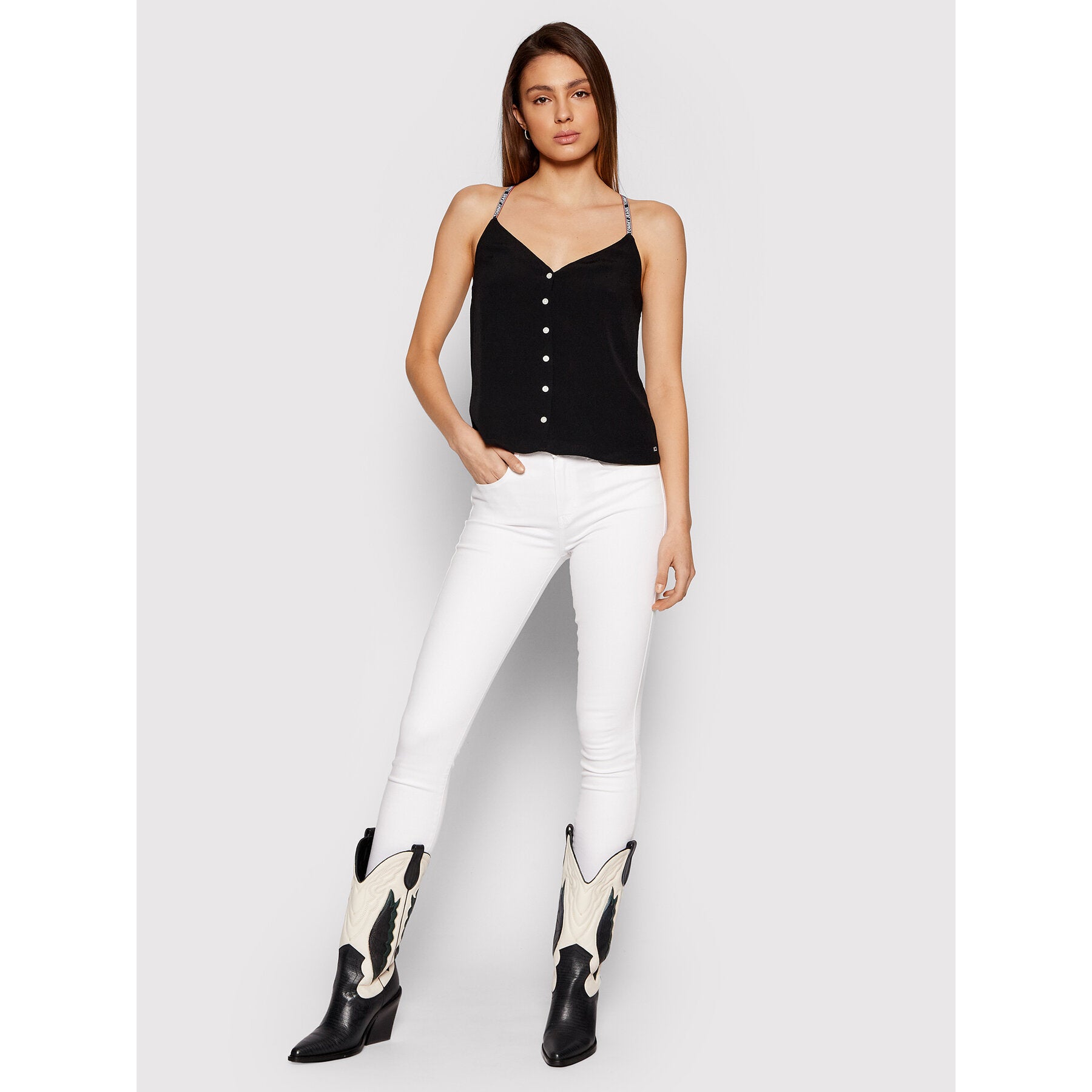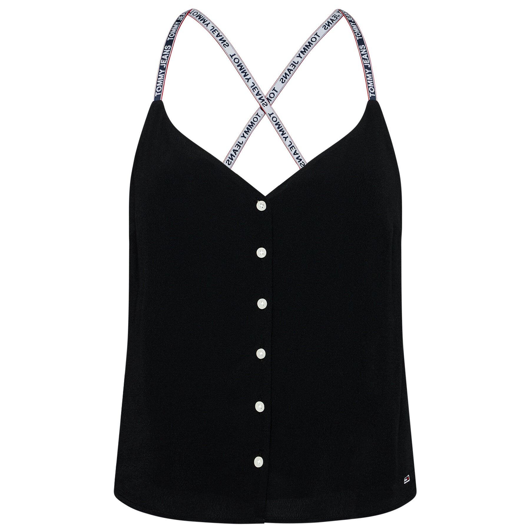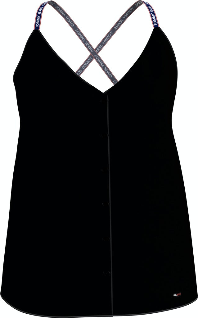 Tommy hilfiger jeans - tjw cami top button thru , xs , black , style dw0dw09762
