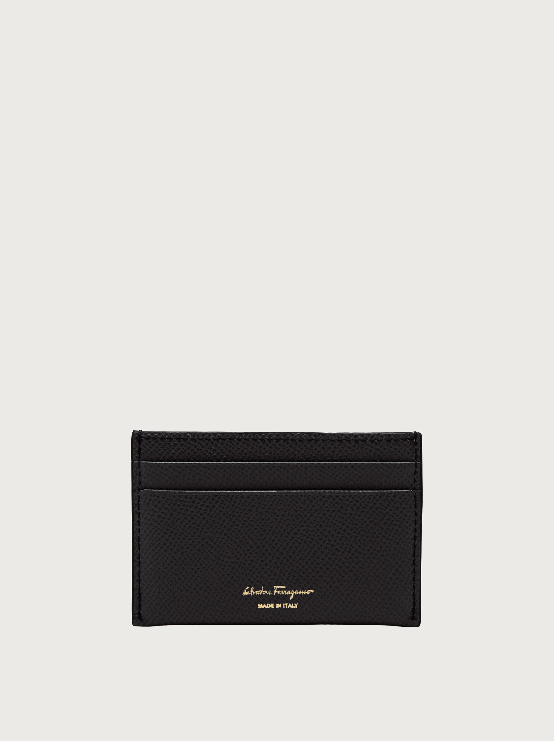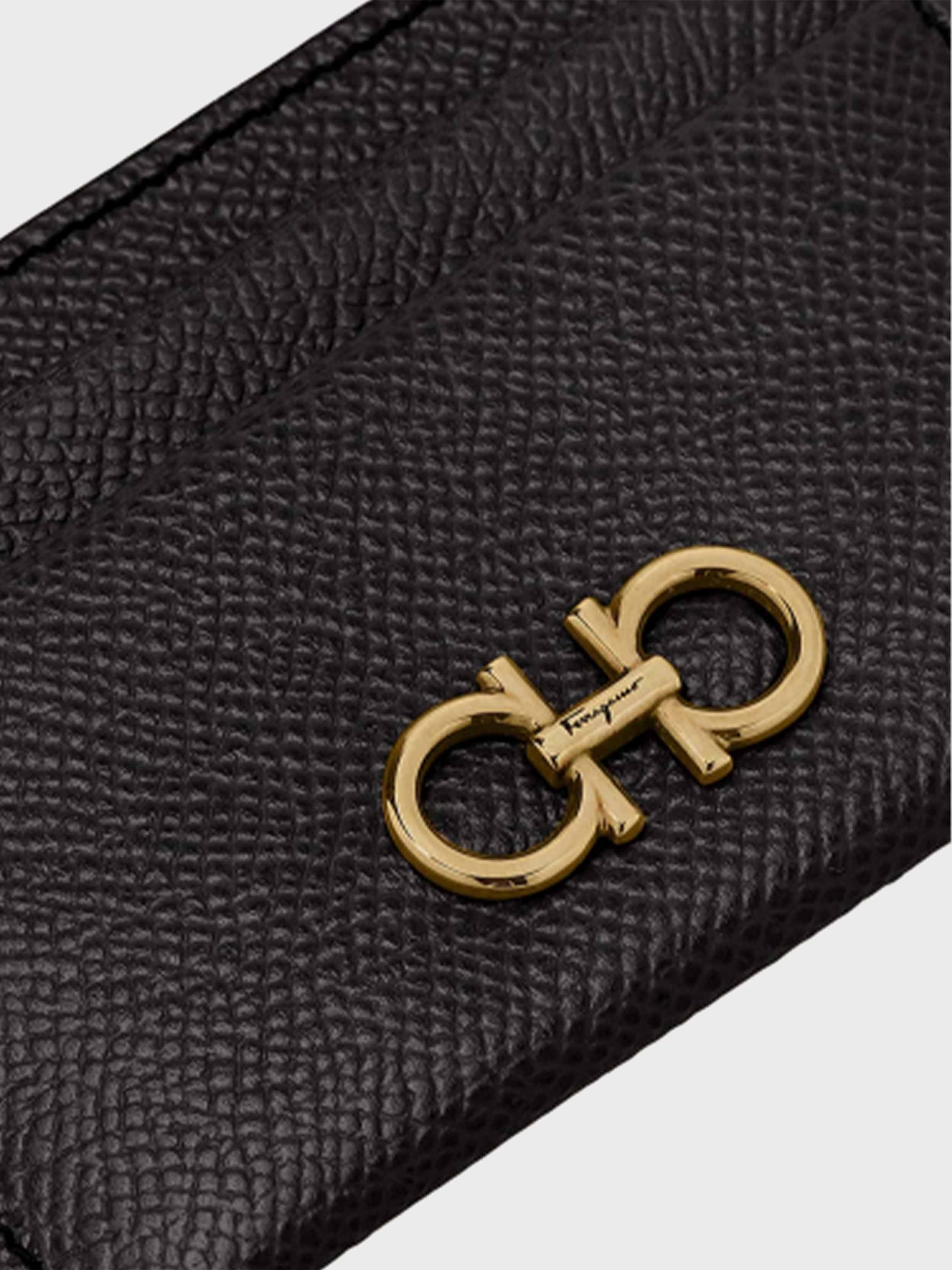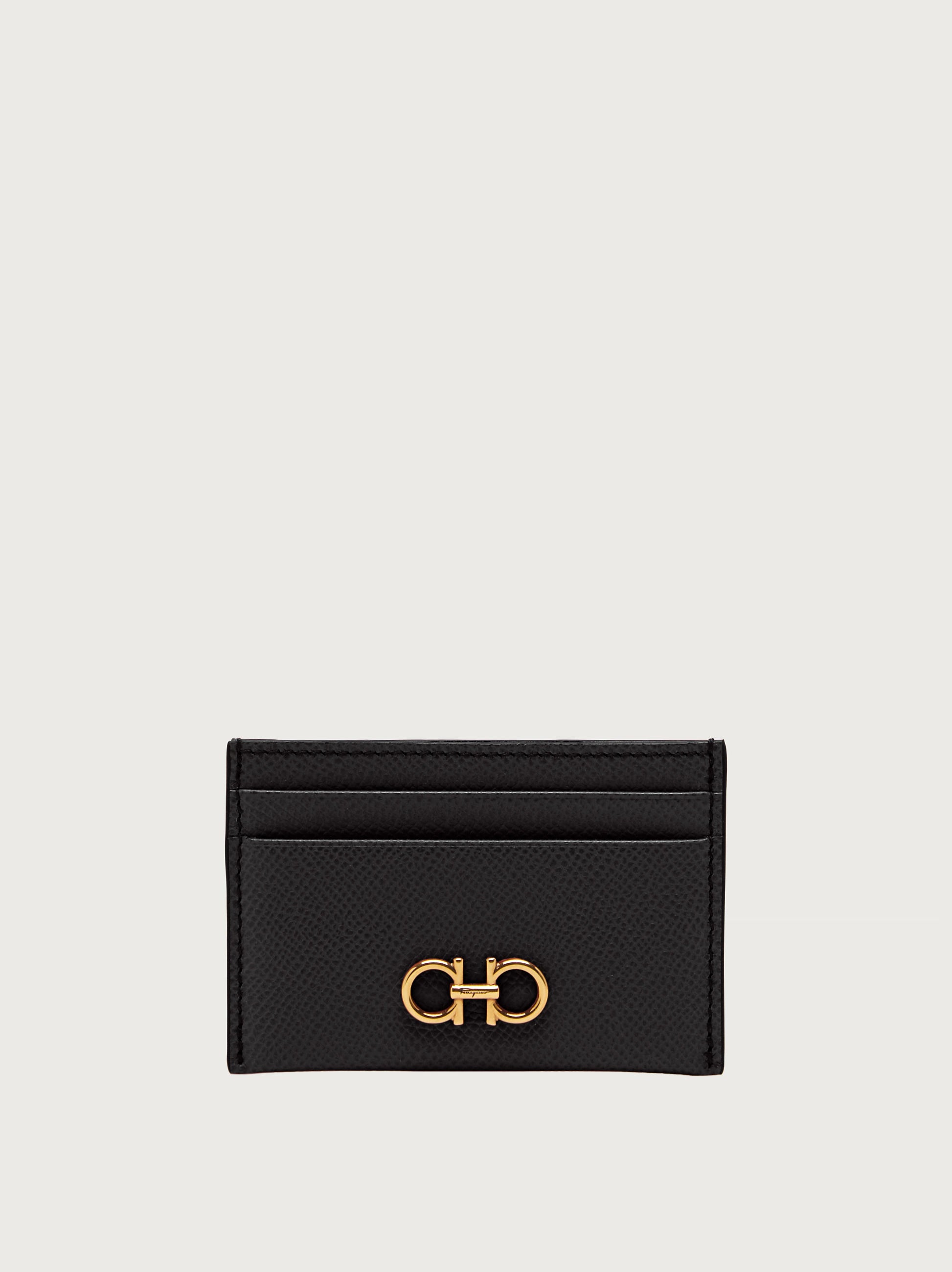 • Compact, versatile, easy chic the credit card holder is the perfect ally to keep your essentials close at hand. This chic little space saver is made of hammered calf leather and decorated with an antique gold Gancini on the front for an exclusive finish.