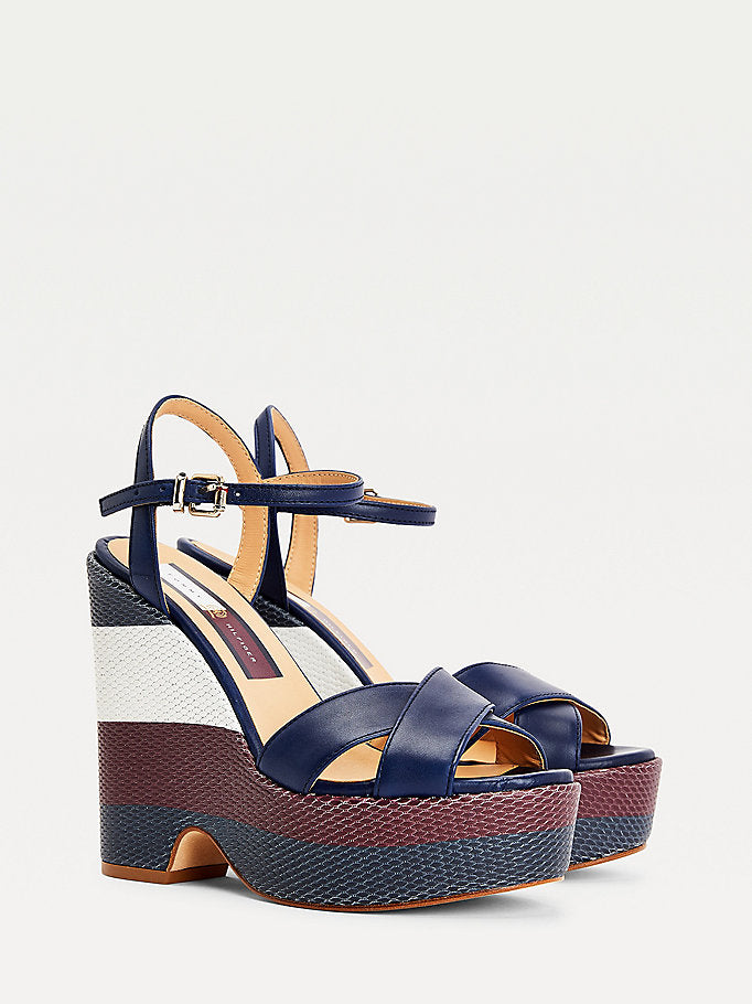 Tommy hilfiger - hcw rwb raffia high wedge , 39 , desert sky , style fw0fw05749