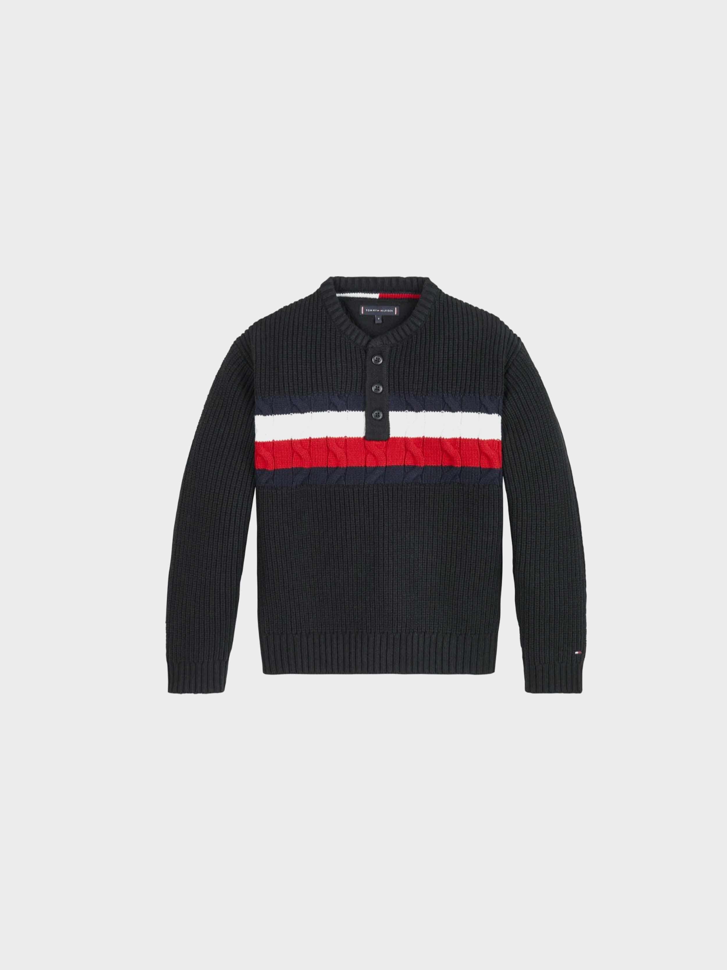 • Tommy Hilfiger - Boys' Global Stripe Henley Sweater