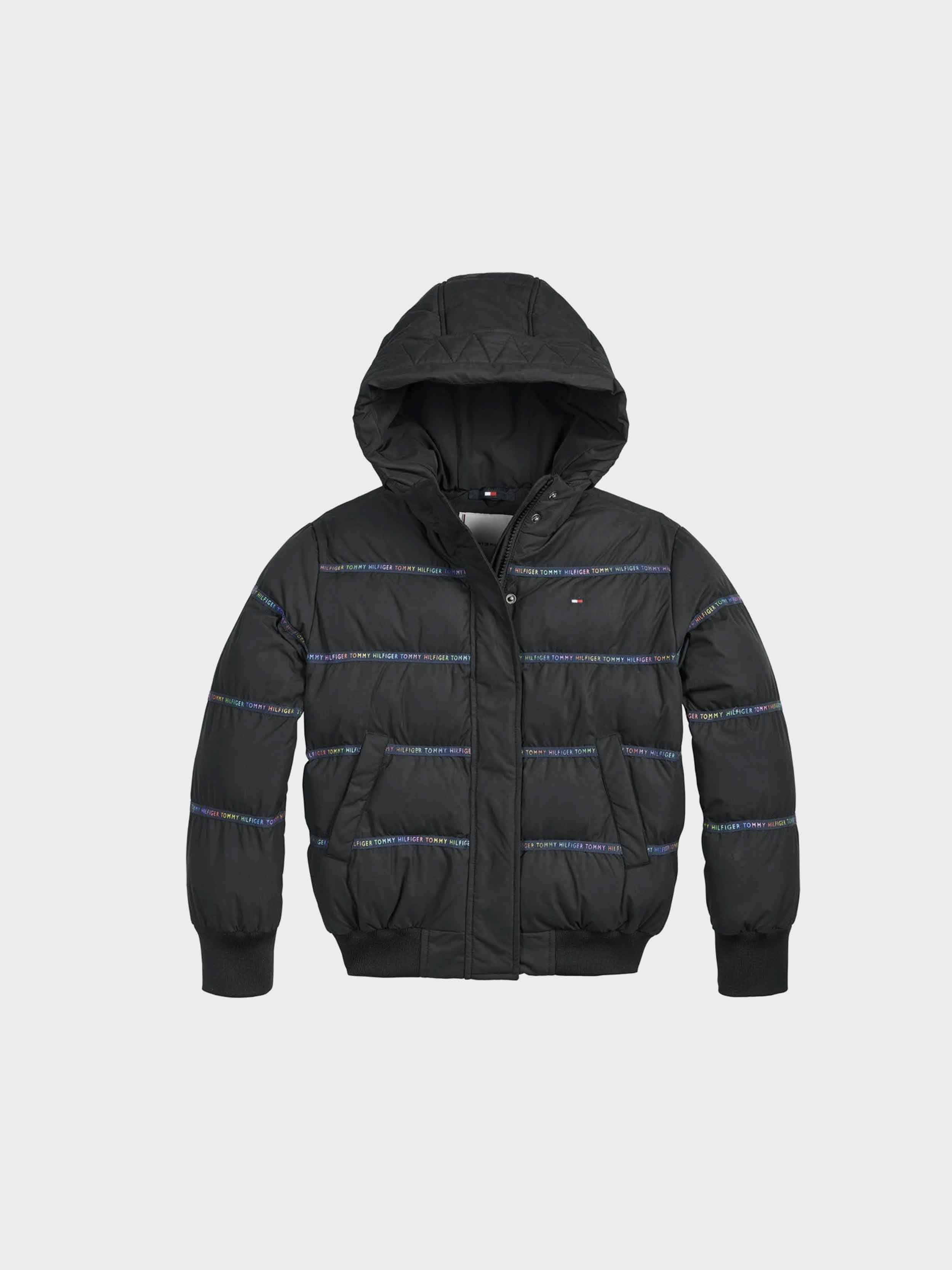 Tommy hilfiger - tape long bomber puffer , 14 , black , style kg0kg06200