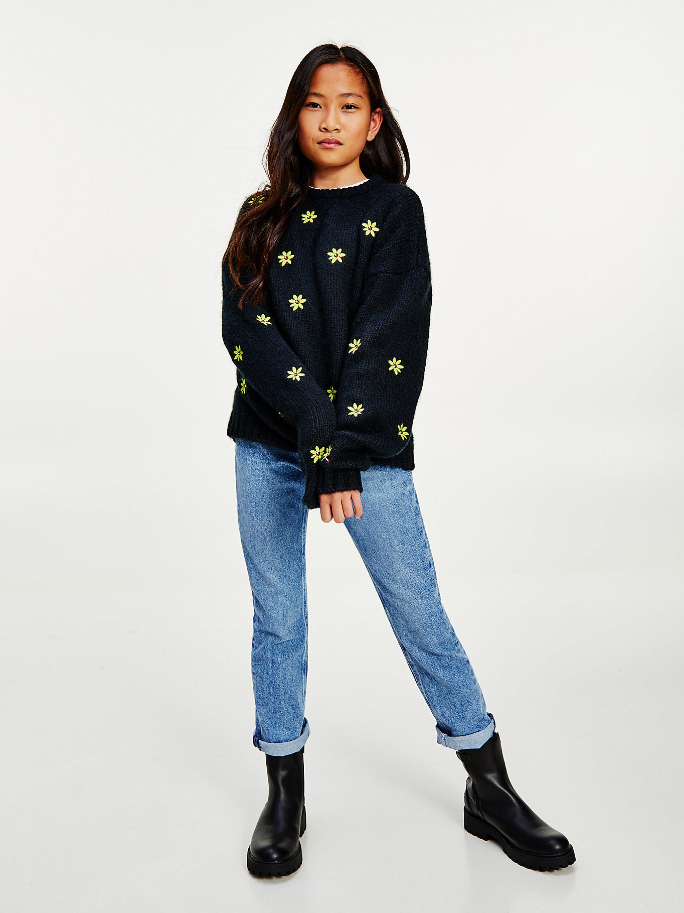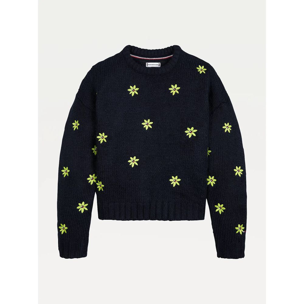 Tommy hilfiger - Girls - flower embroidery crew neck jumper