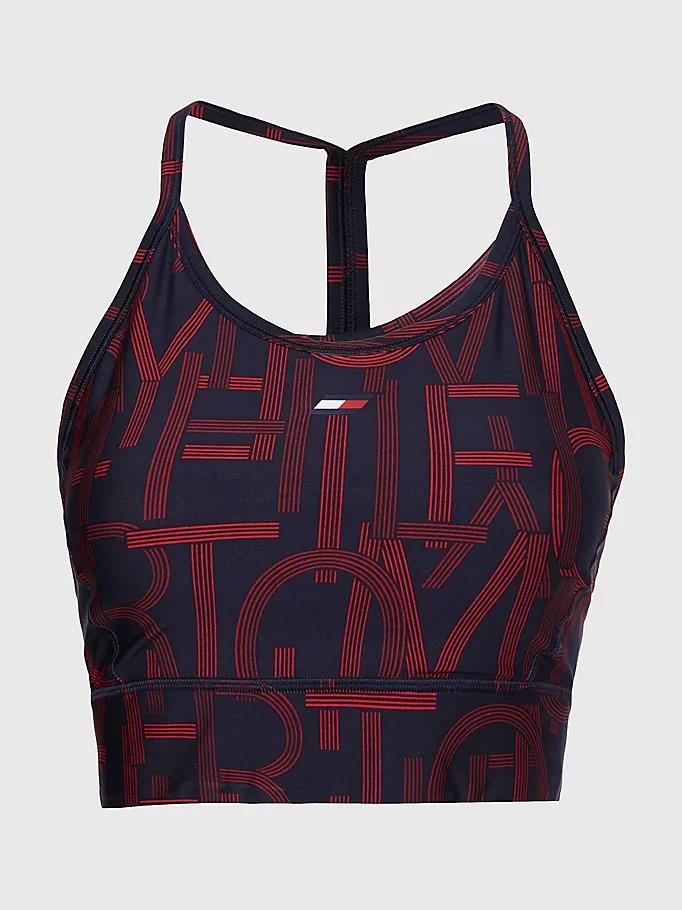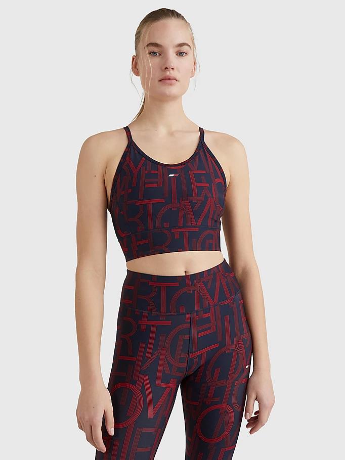 Tommy hilfiger - mid intensity aop long bra , l , textured type print , style s10s101113