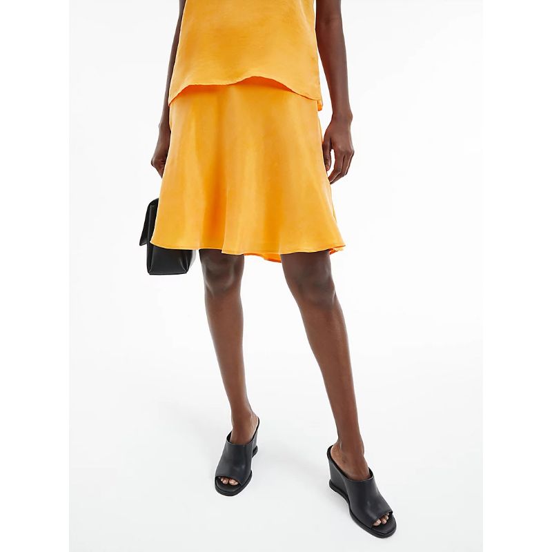 Calvin klein - shine viscose above knee skirt , 42 , orange flash , style k20k203823
