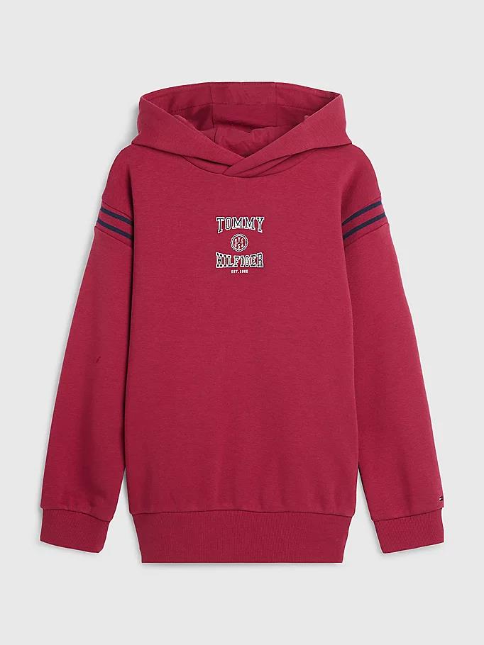 Tommy hilfiger - varsity slouchy hoodie , 4 , cranberry crush , style kg0kg06324