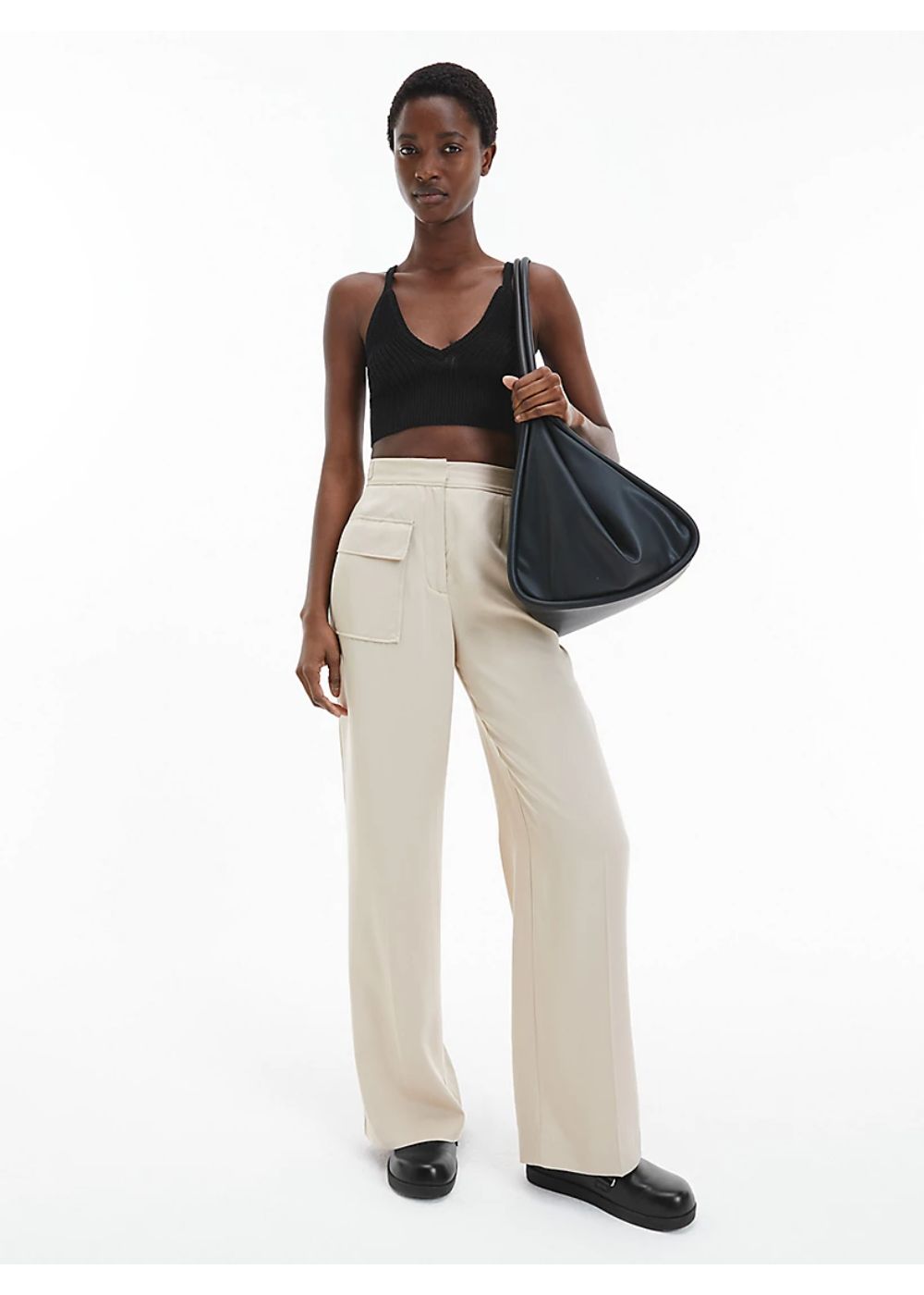 Calvin klein - open knit cami top , m , ck black , style k20k204379