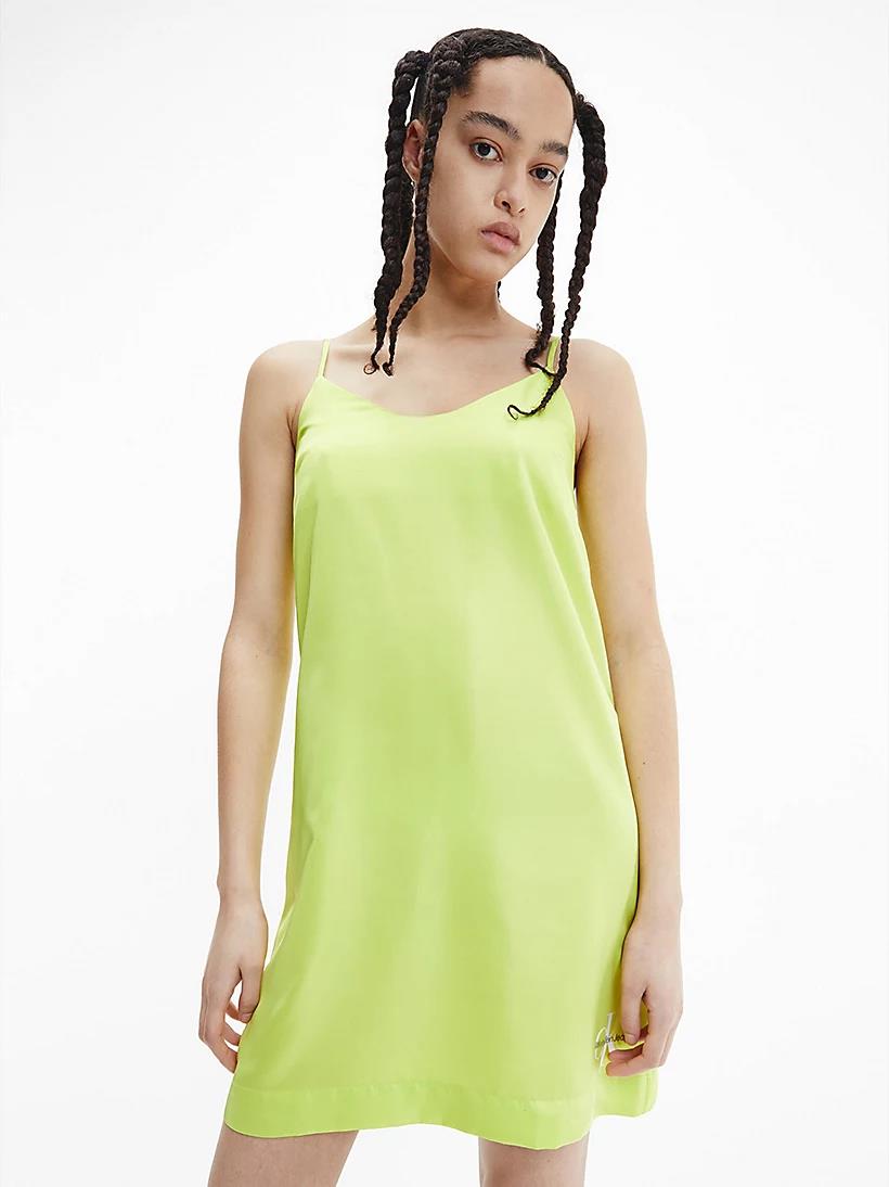 Calvin klein jeans - monogram cami dress , l , lemon lime , style j20j218344