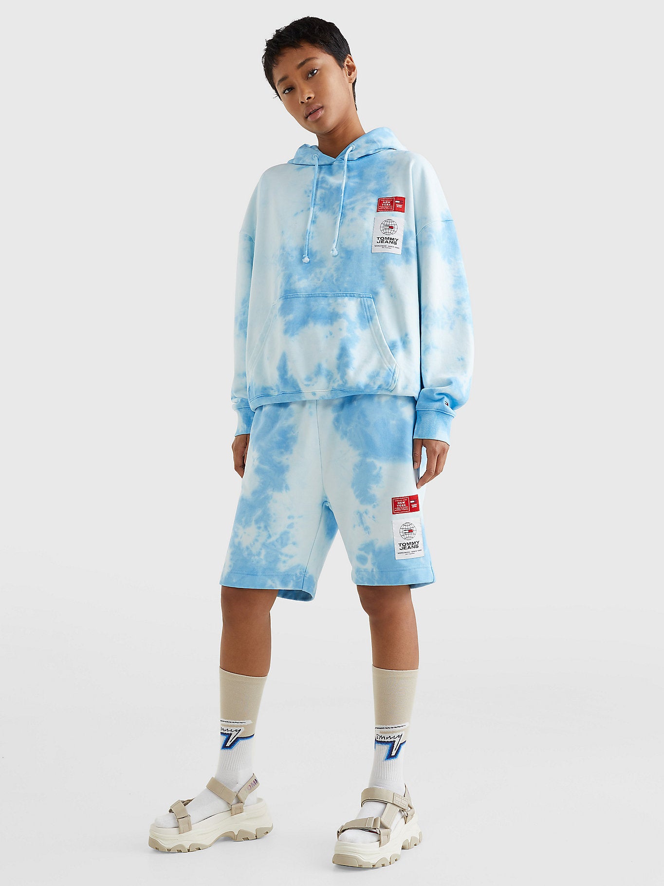 Tommy hilfiger jeans - tjw tommy tie dye bb sweatshort , xl , tie dye blue , style dw0dw12628