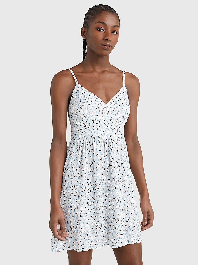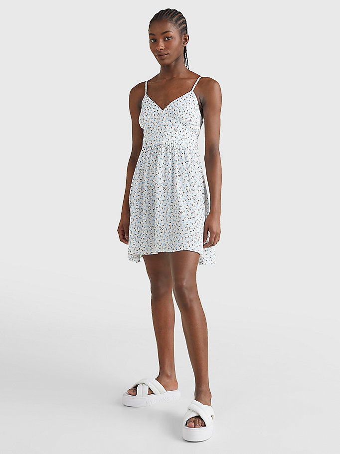 Tommy hilfiger jeans - tjw printed fit flare mini dress , s , island floral crush print , style dw0dw12879