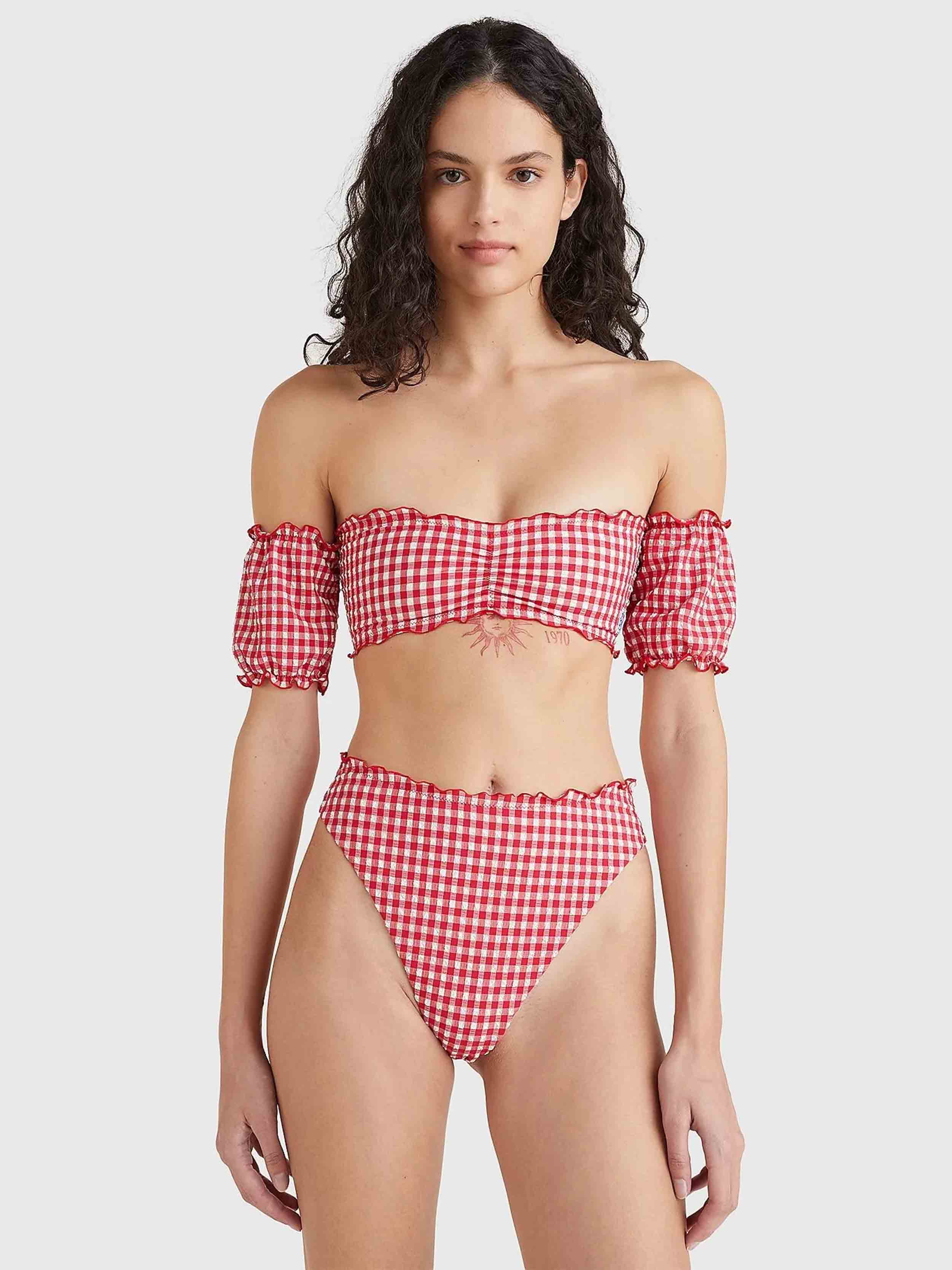Tommy hilfiger - high leg cheeky bikini , l , primary red and white gingham , style uw0uw03392