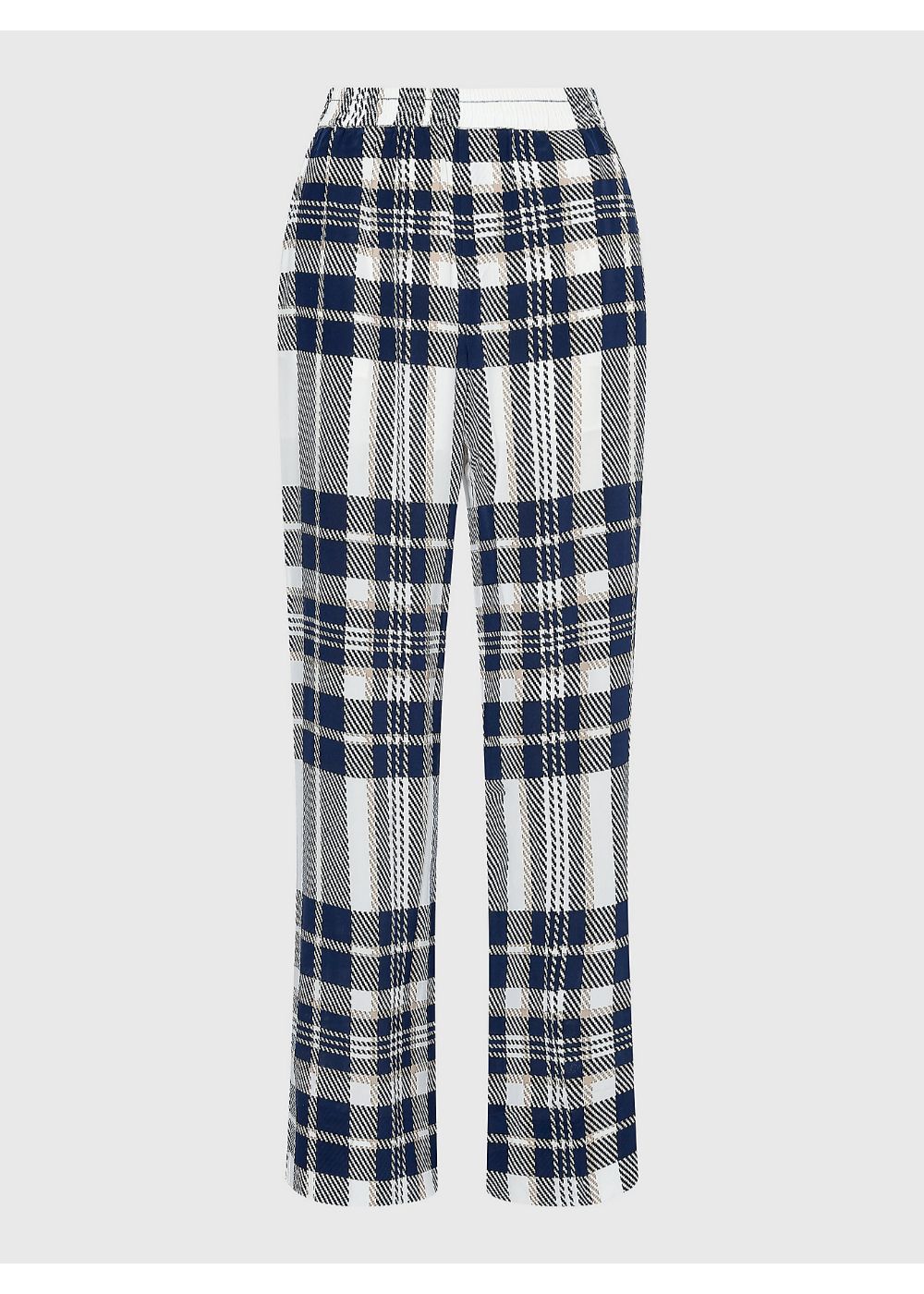 Tommy hilfiger - icon silk pull on straight pant , 40 , icon large chk/ ecru/ pitch blue , style ww0ww34978