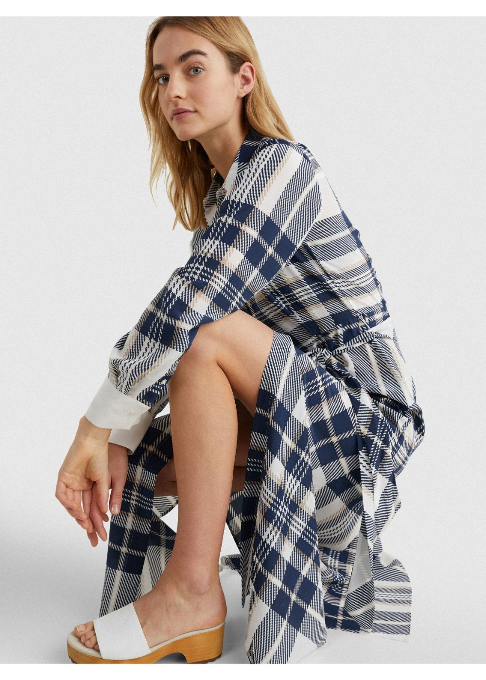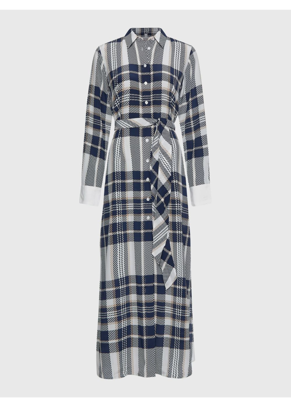 Tommy hilfiger - icon silk long shirt dress ls , 36 , icon large chk/ ecru/ pitch blue , style ww0ww35402