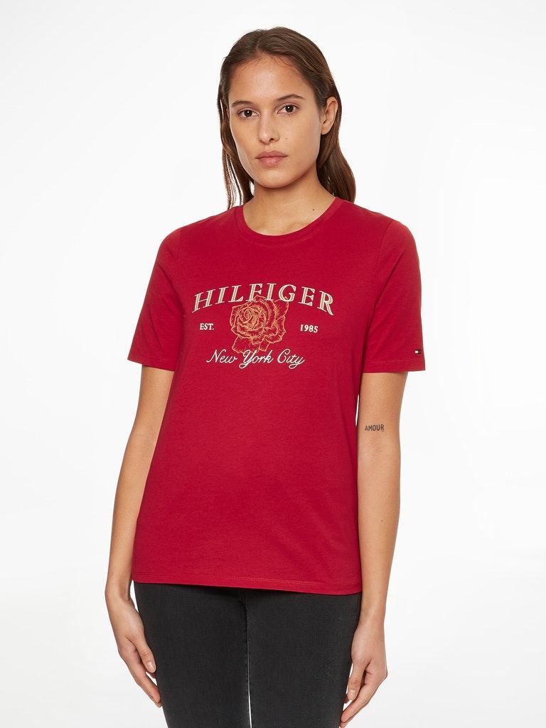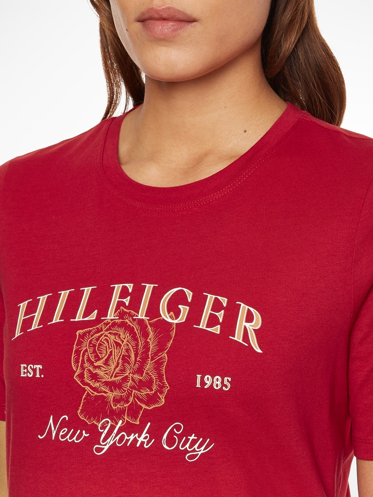Tommy hilfiger - regular rose print c-nk top ss , m , royal berry , style ww0ww34680