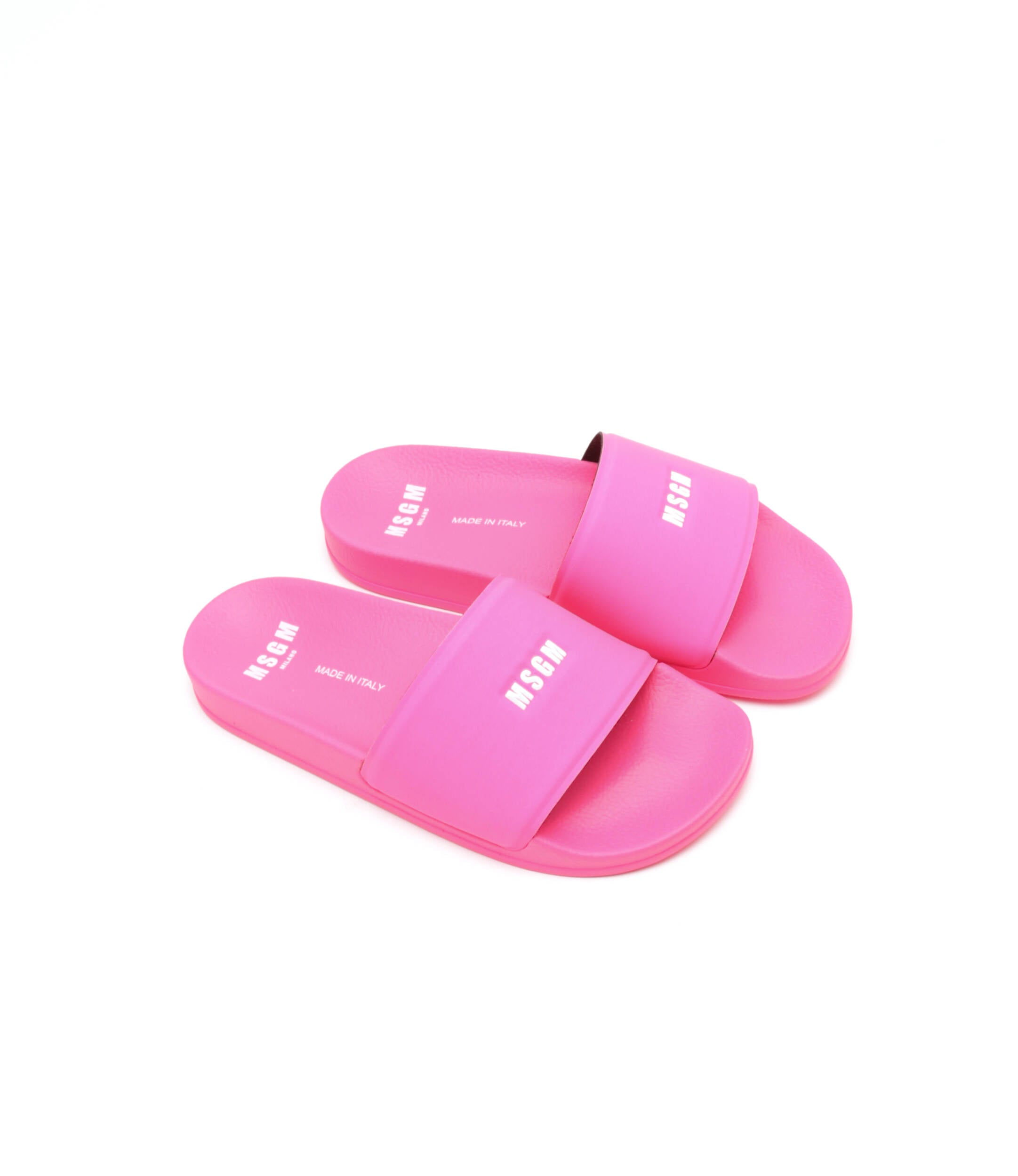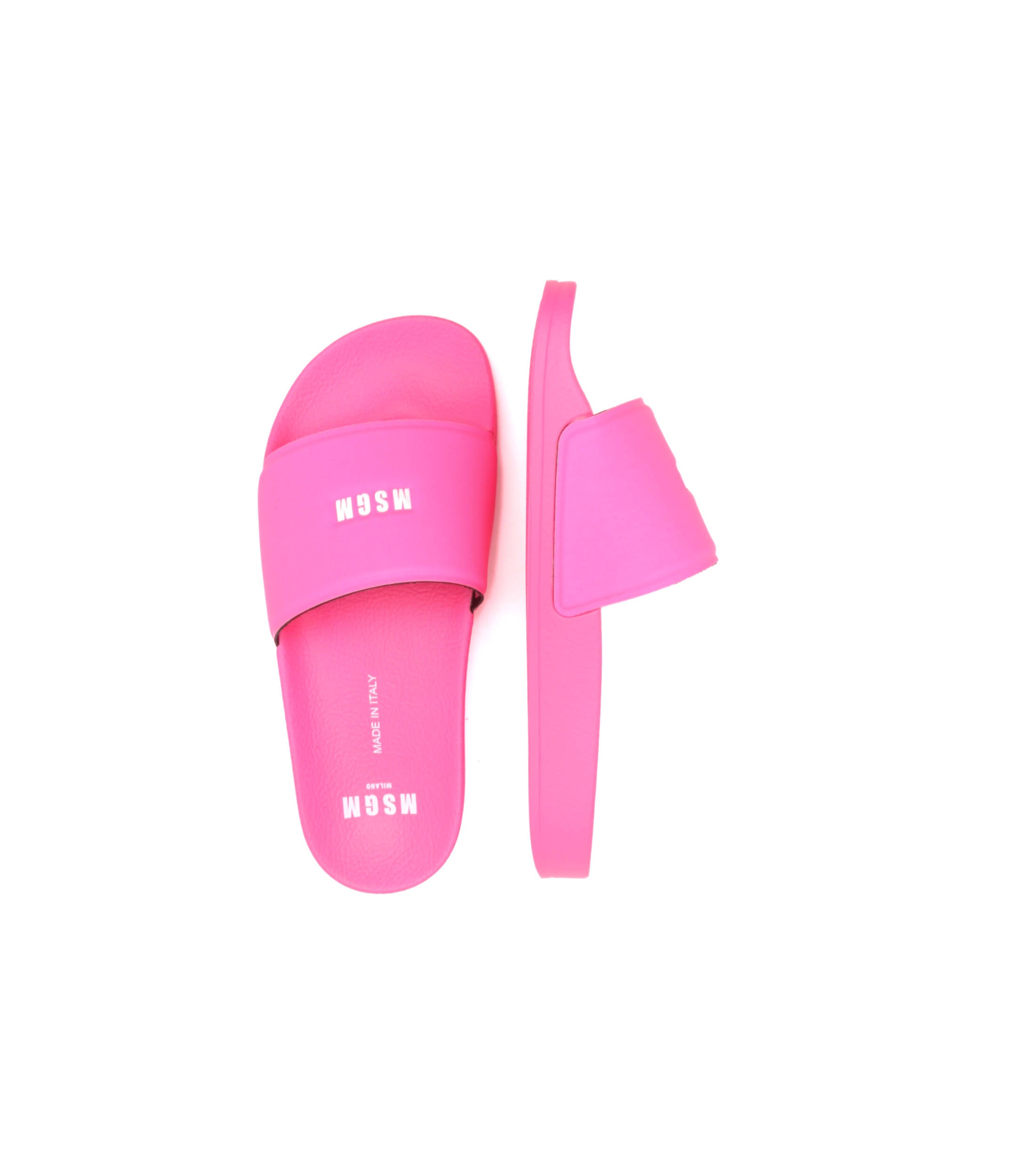 • Bright green flip-flops. The wide bridge is decorated with a logo.