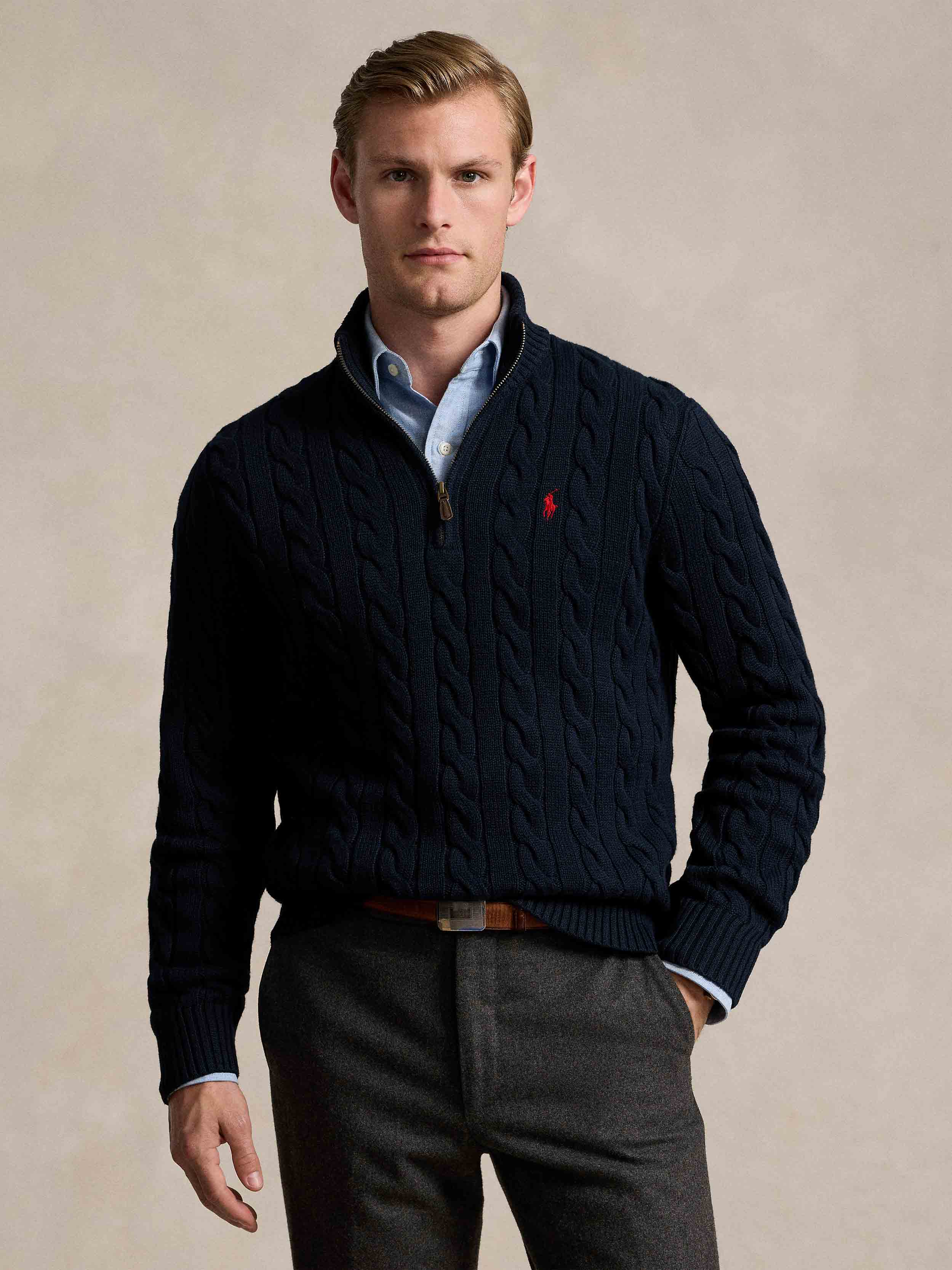 • This chunky-knit cotton layer features our iconic cable design and signature embroidered Pony.