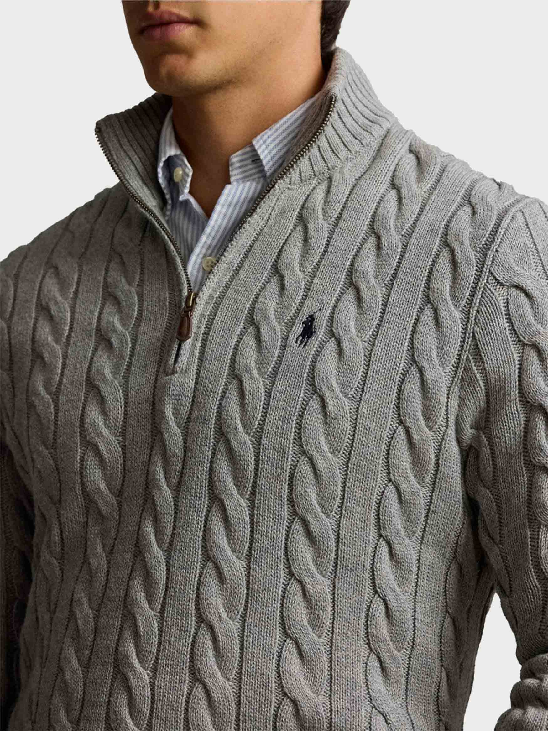• This chunky-knit cotton layer features our iconic cable design and signature embroidered Pony.