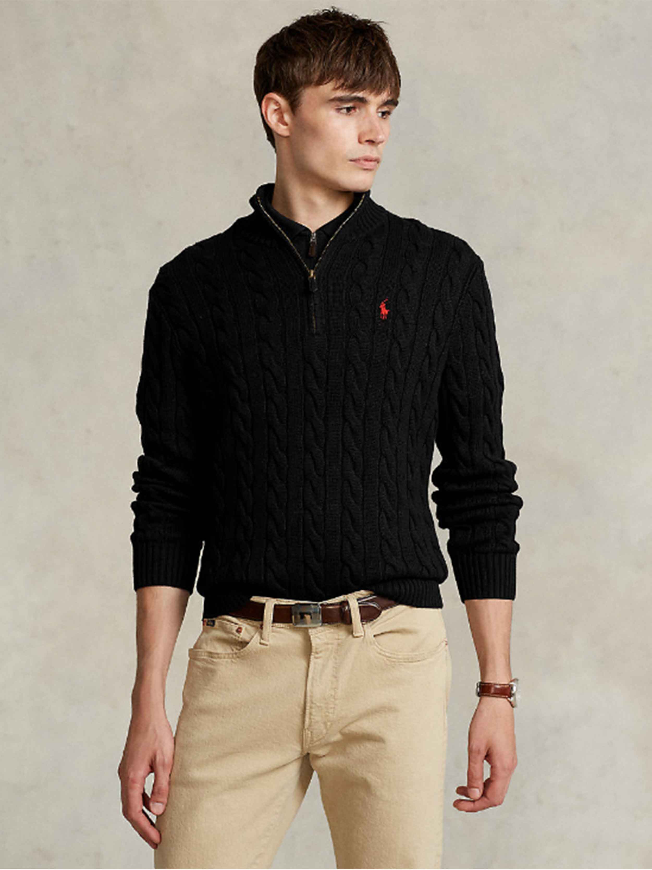 • This chunky-knit cotton layer features our iconic cable design and signature embroidered Pony.