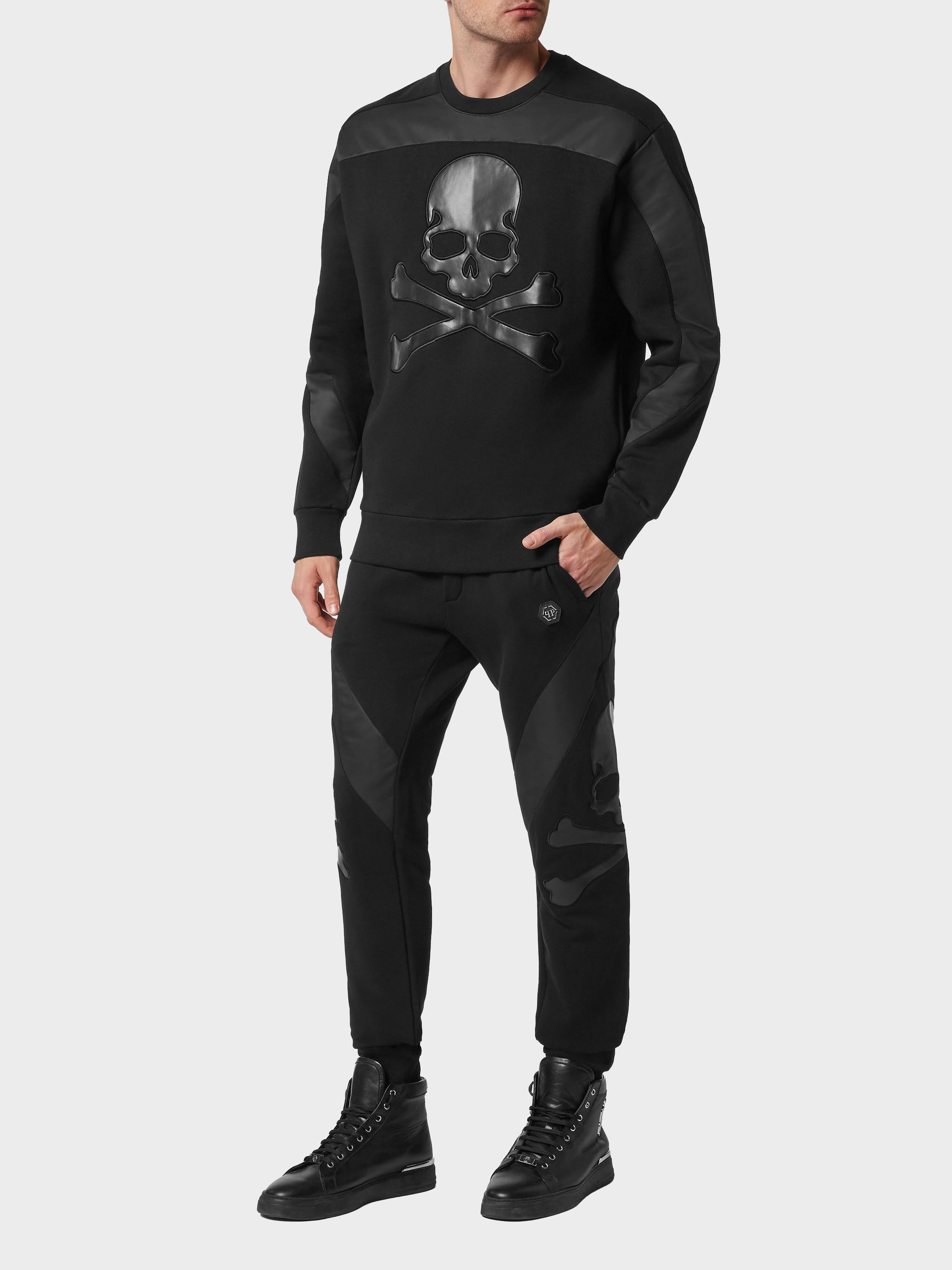 • Philipp Plein - Men's Sweatshirt With Stitched Panels And Skull Embellishment