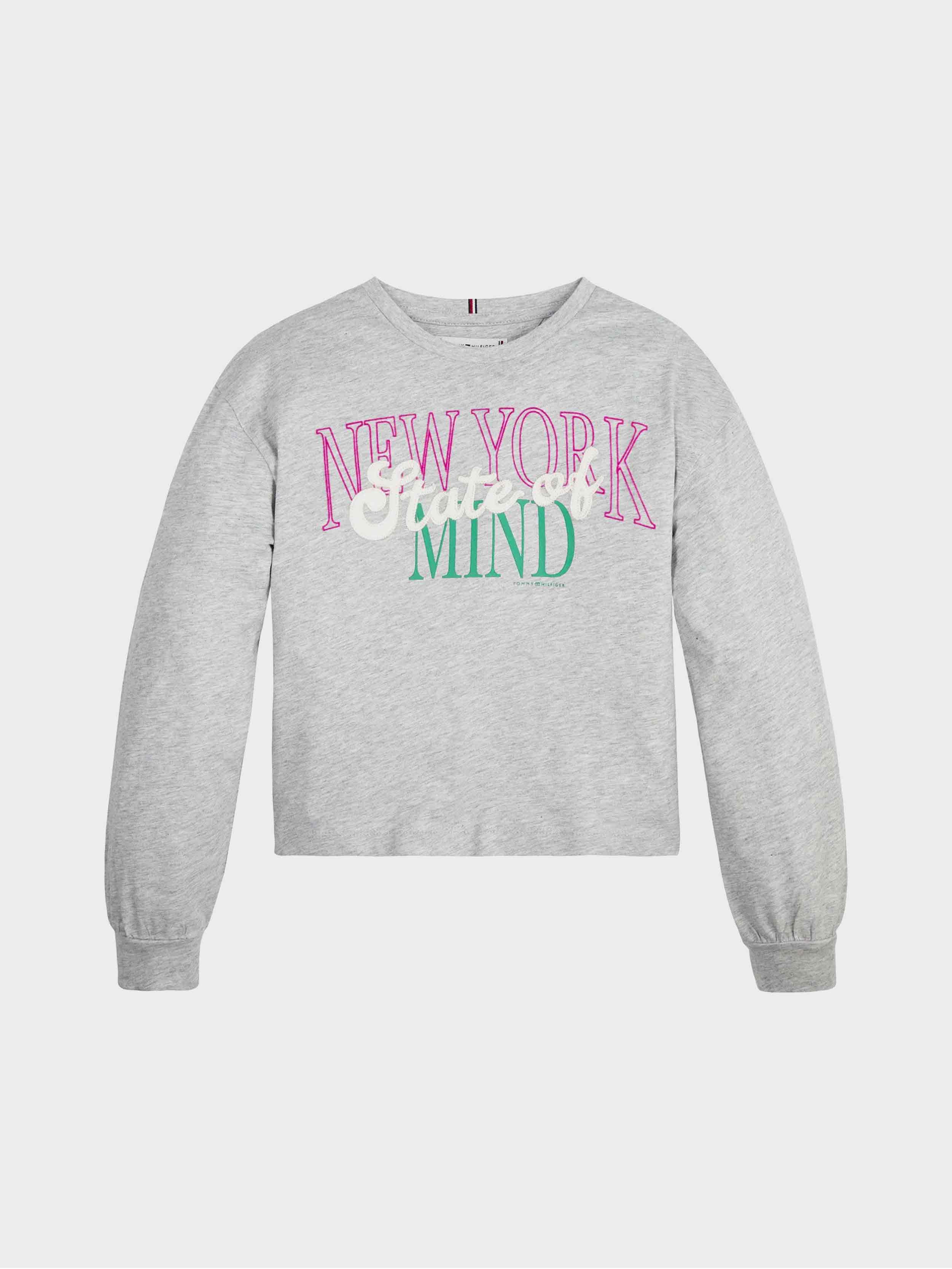 Tommy hilfiger - slogan tee l/s , 6 , light grey heather , style kg0kg06941