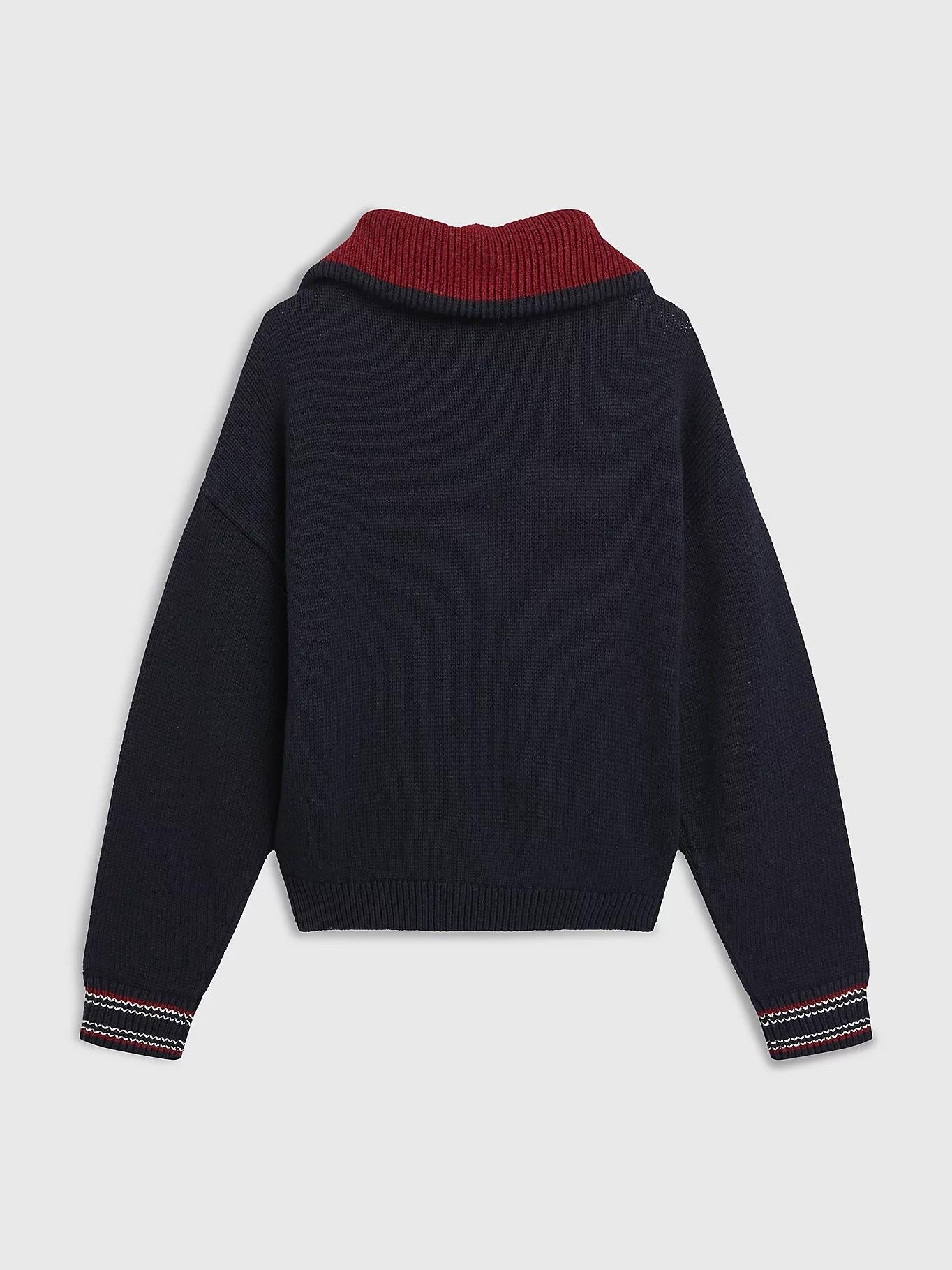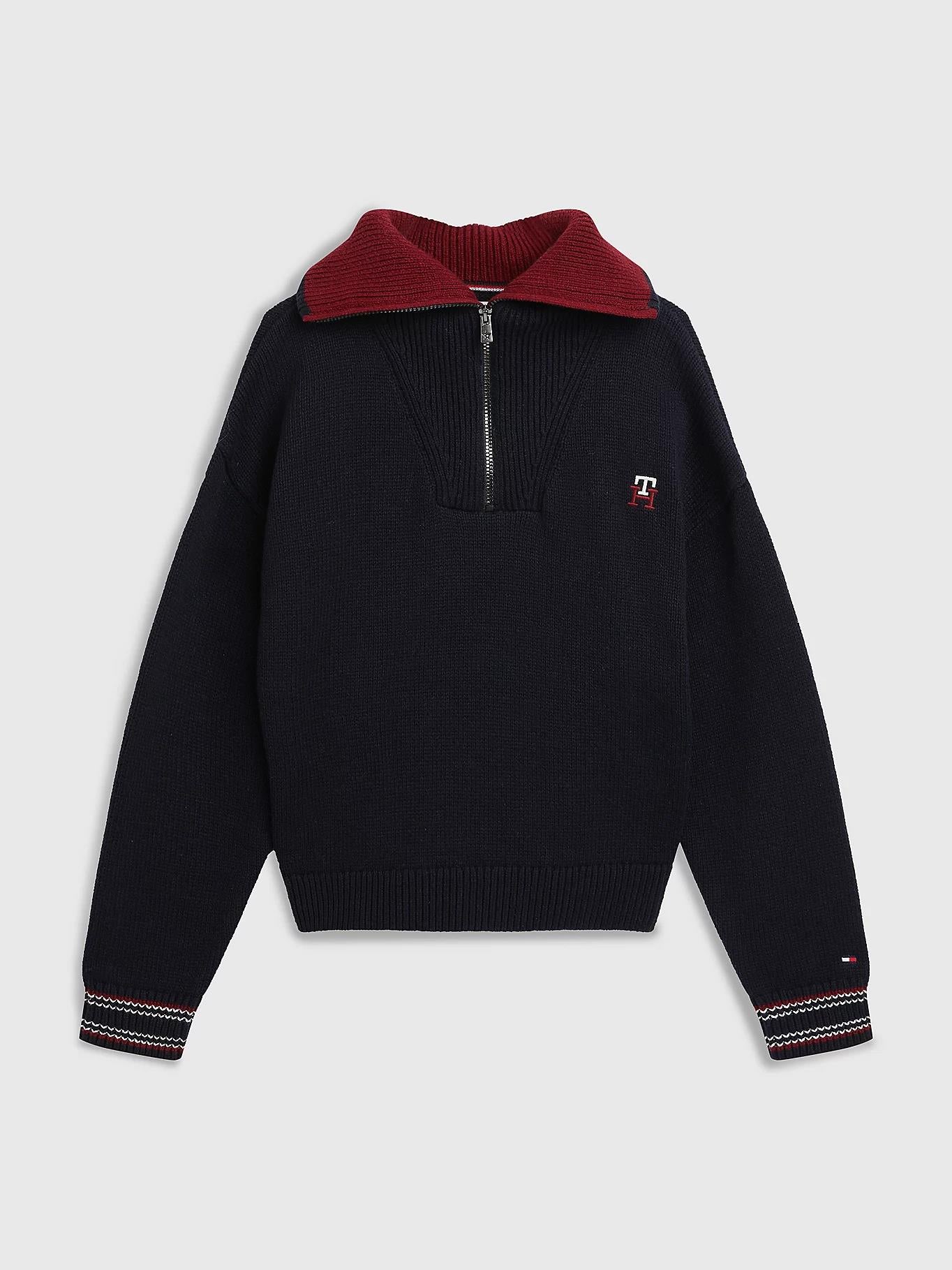 Tommy hilfiger - monogram half zip-up sweater , 8 , desert sky , style kg0kg06902