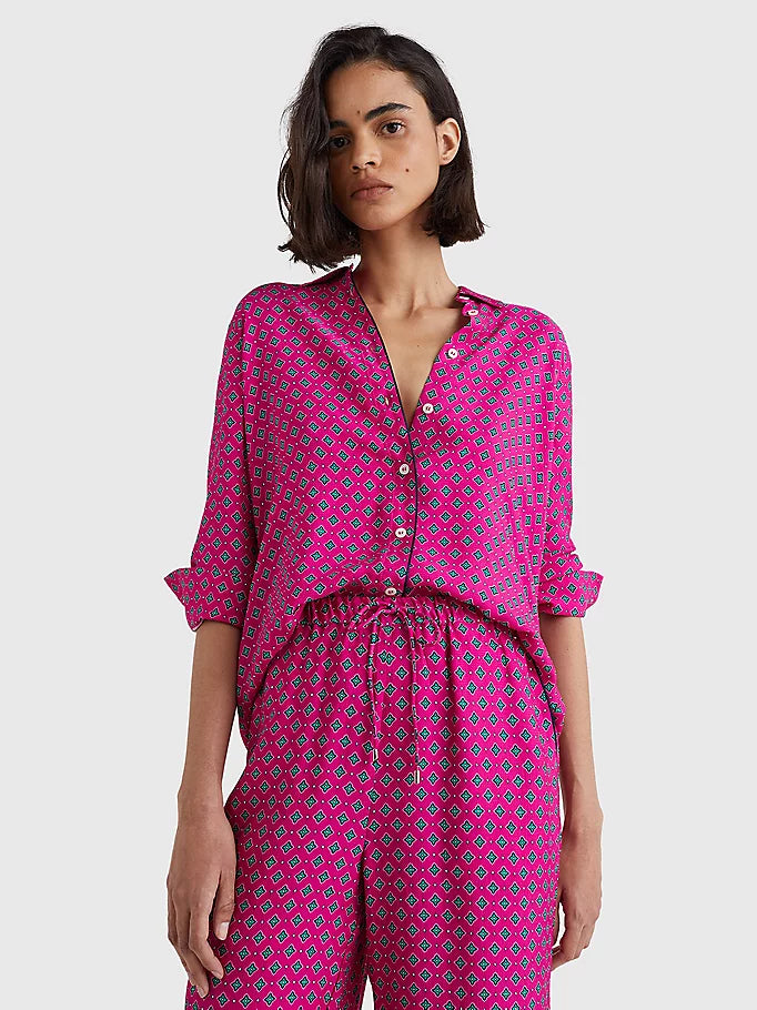 Tommy hilfiger - vis foullard fleur shirt ls , 38 , foulard print eccentric magenta , style ww0ww36661