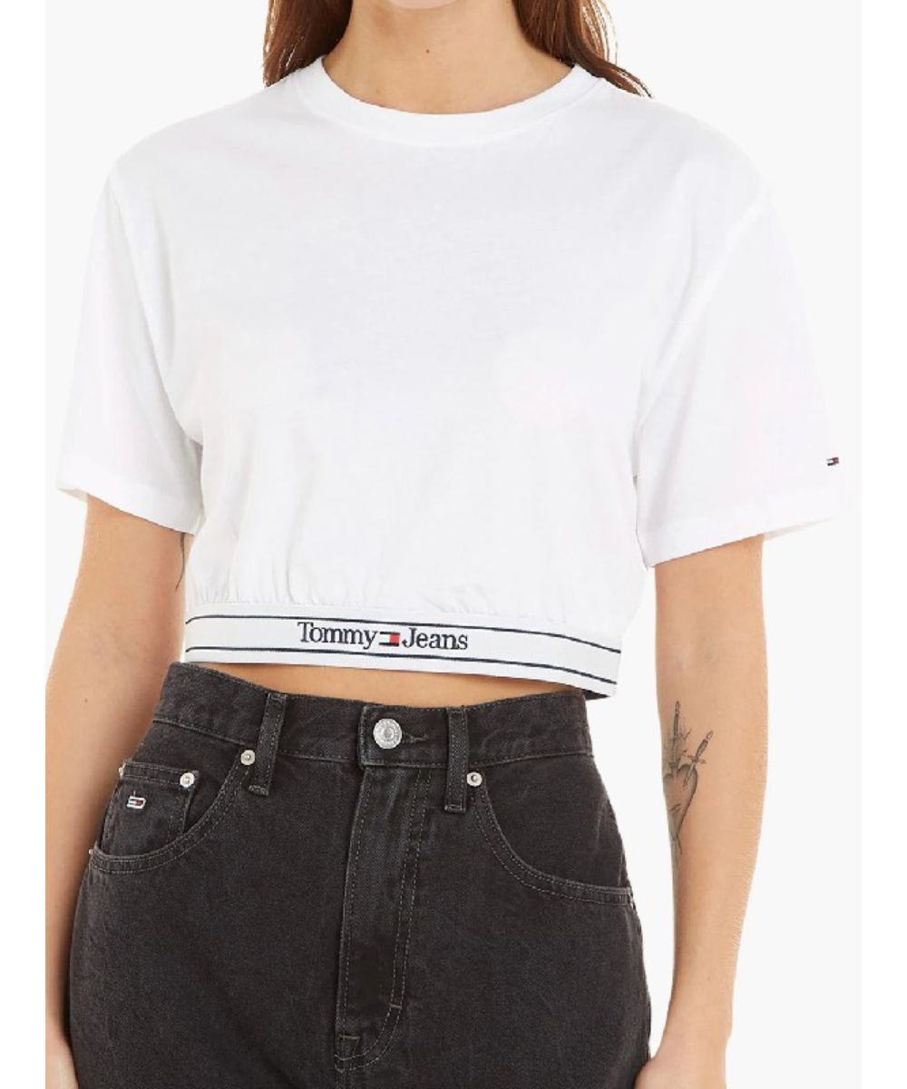 Tommy hilfiger jeans - tjw crop logo wb ss , s , white , style dw0dw15167