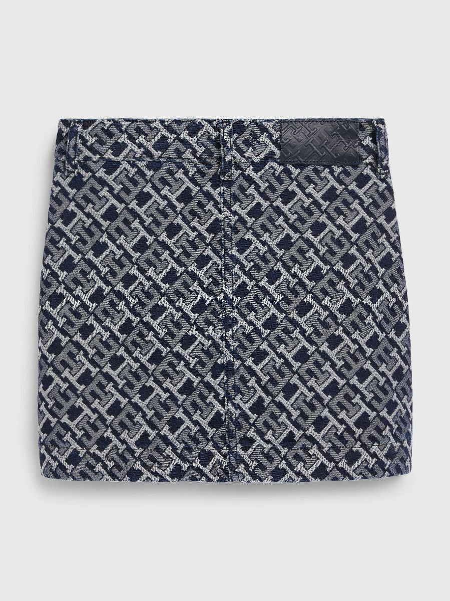 • Tommy Hilfiger - Girls' Monogram Jacquard Denim Mini Skirt Regular Fit