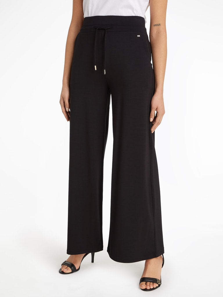 Tommy hilfiger - wide leg knit viscose pants , s , black , style ww0ww37284