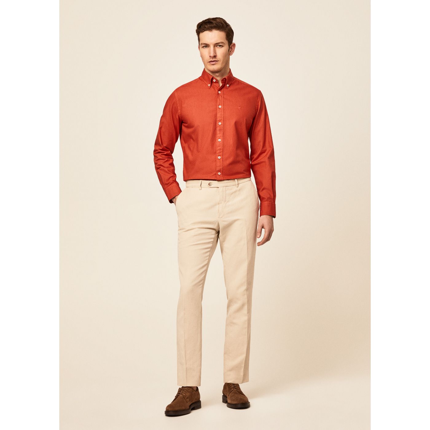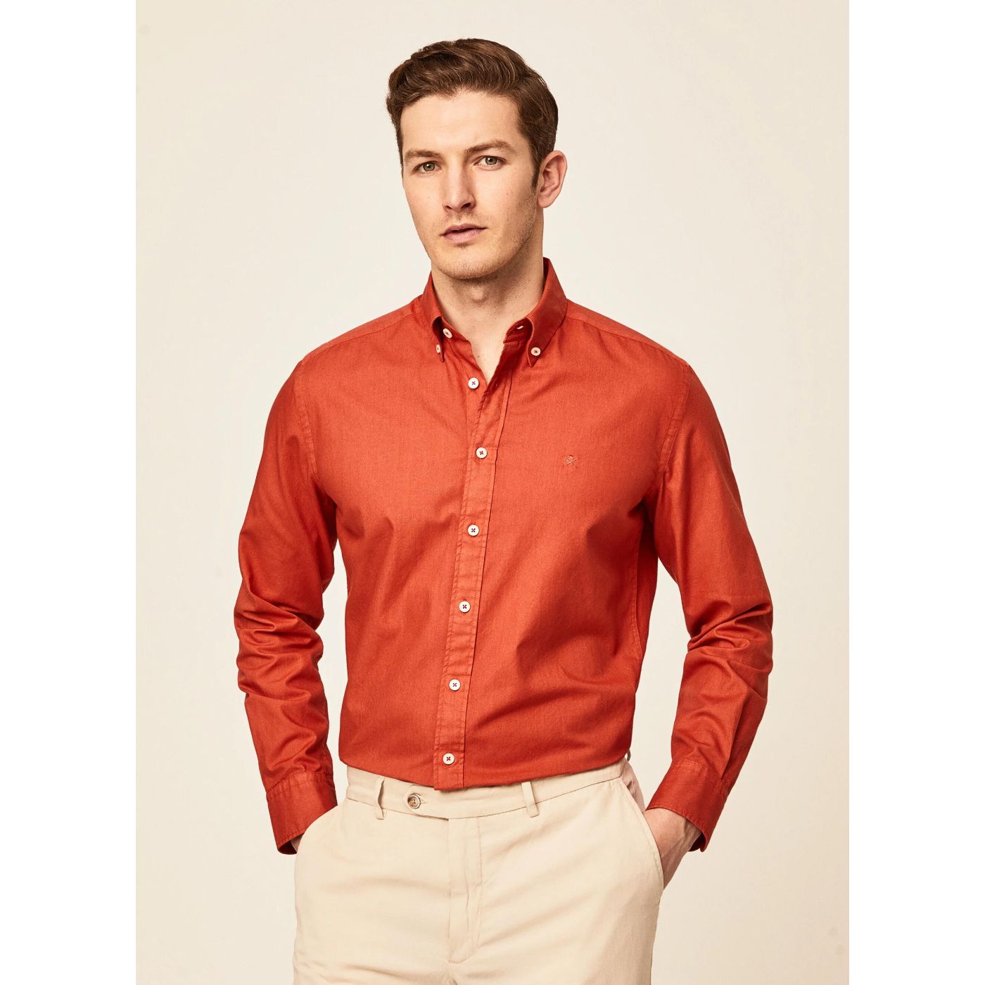 • This classic, premium Oxford cotton shirt is garment dyed to highlight its colours. With a slim fit and button-down collar, this shirt is perfect to combine with a pair of our classic chinos.
