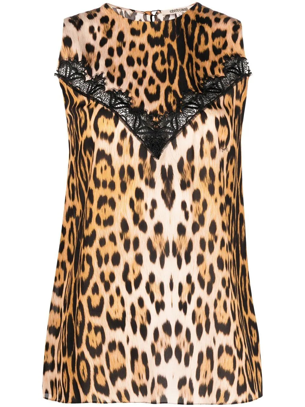 Roberto Cavalli - Leopard Print Lace-Trim Blouse
