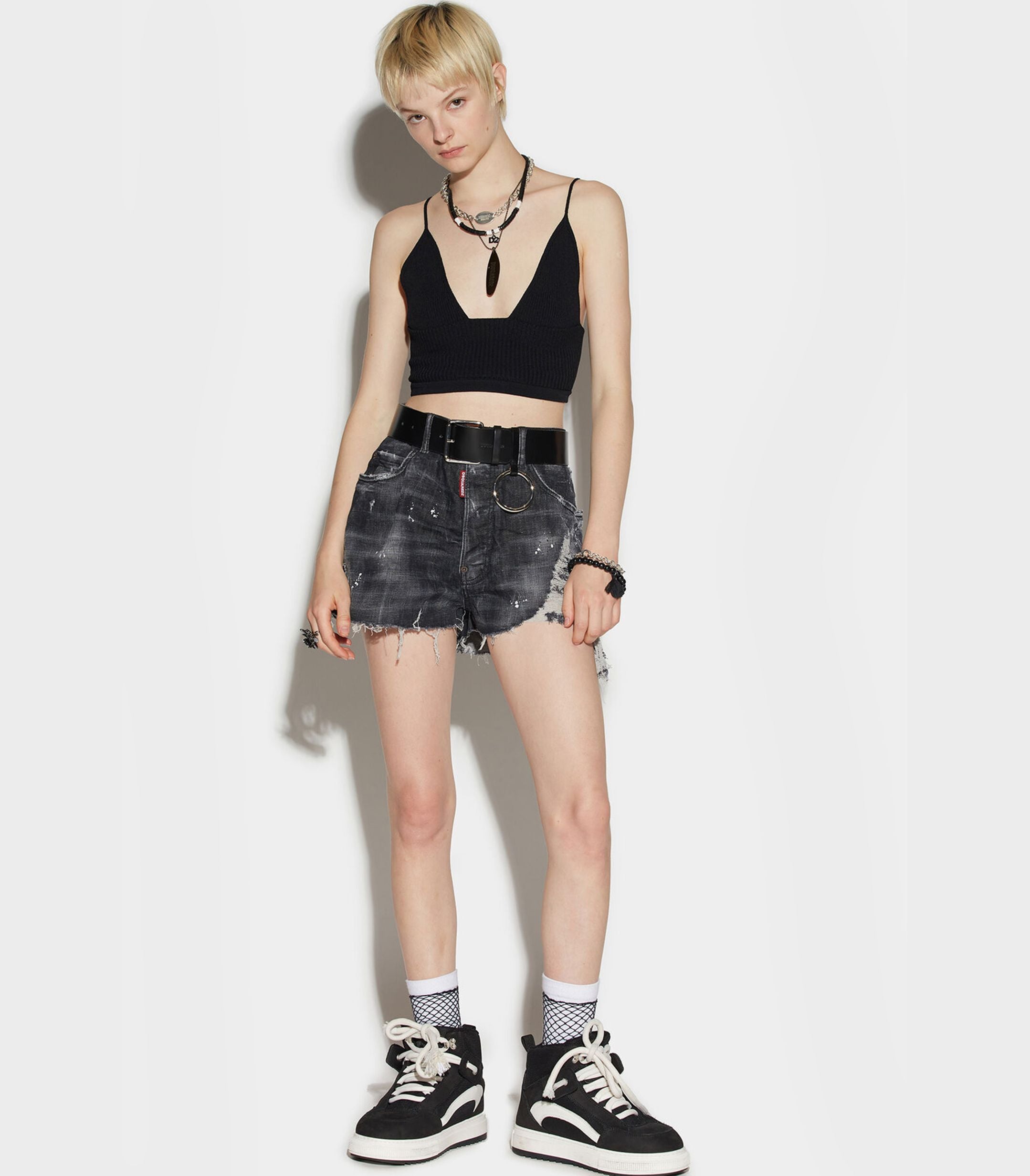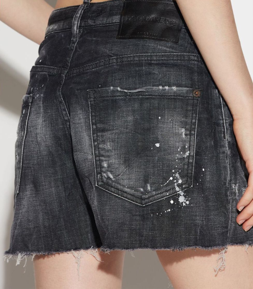• denim shorts from Dsquared2. Distinguished by discolouration effects and distressed details for a vintage vibe, this pair features button fastenings, classic five pockets and frayed hems.