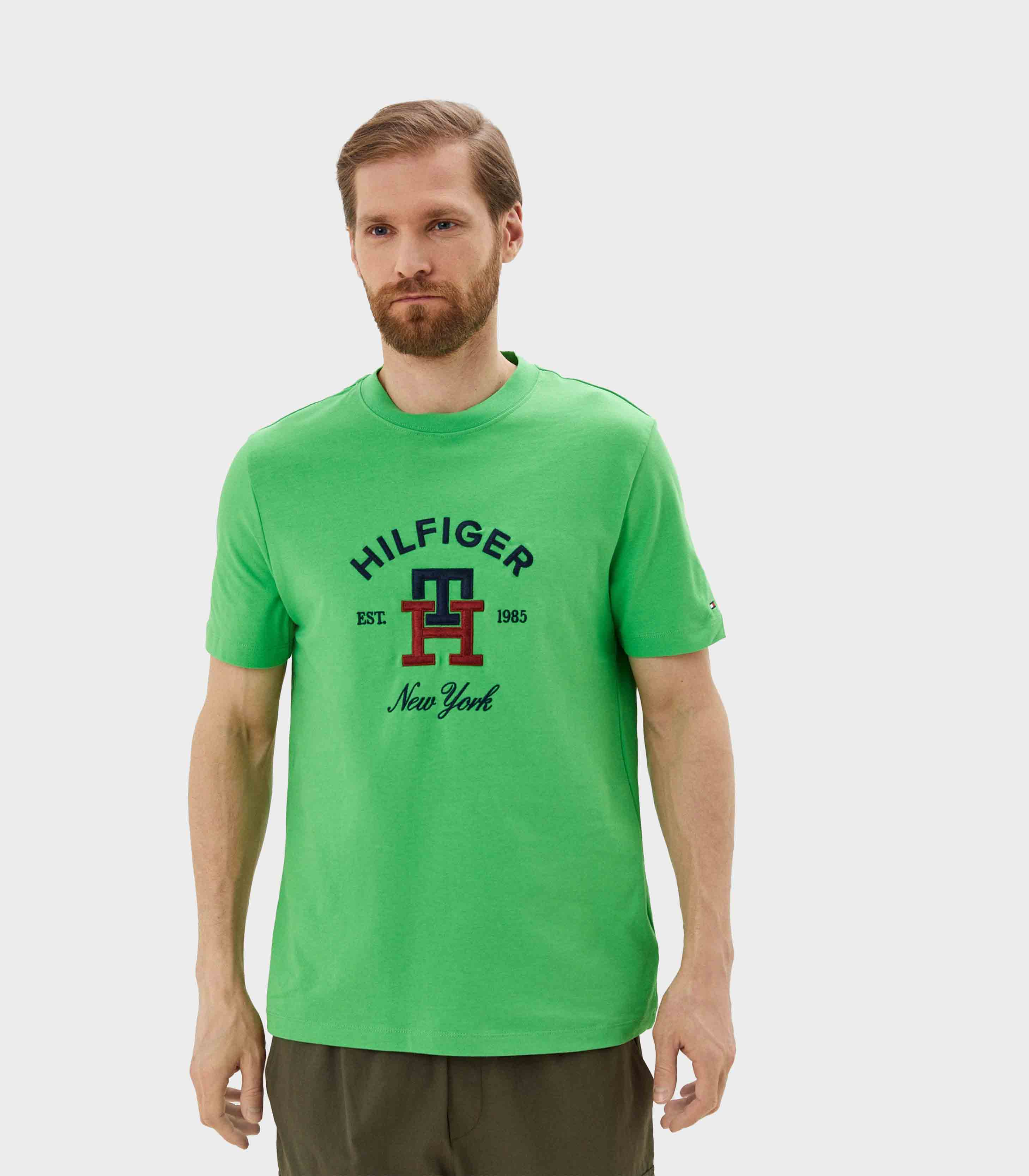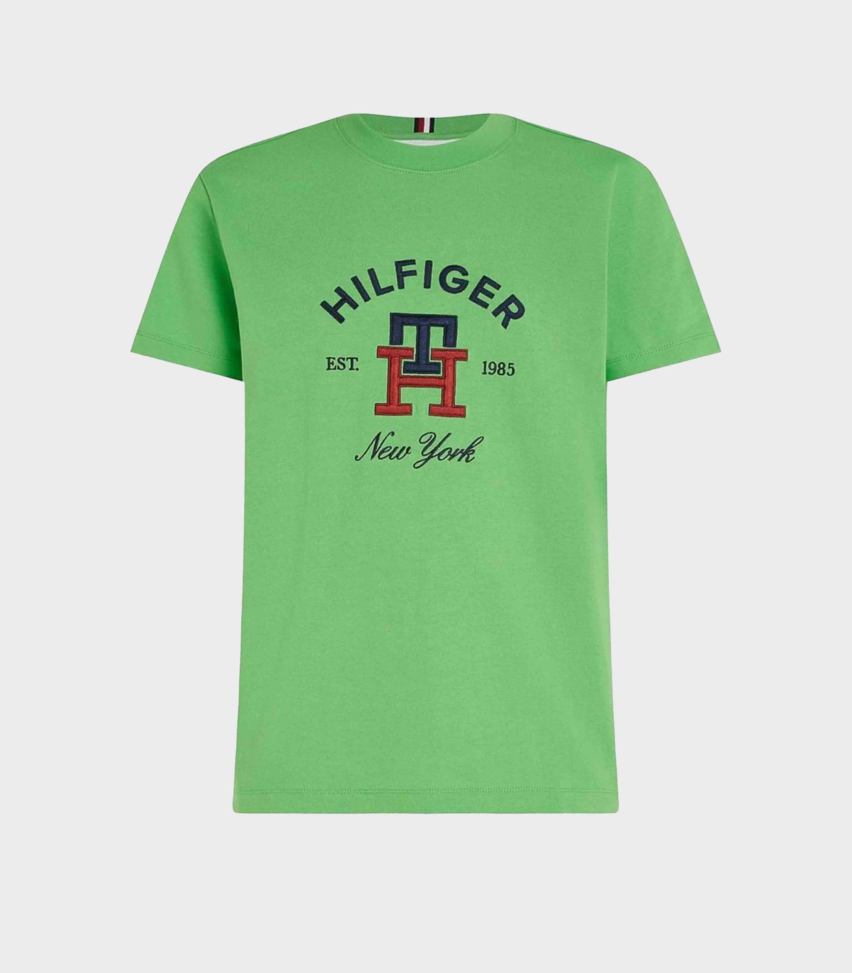 Tommy hilfiger - curved monogram tee , l , spring lime , style mw0mw30043