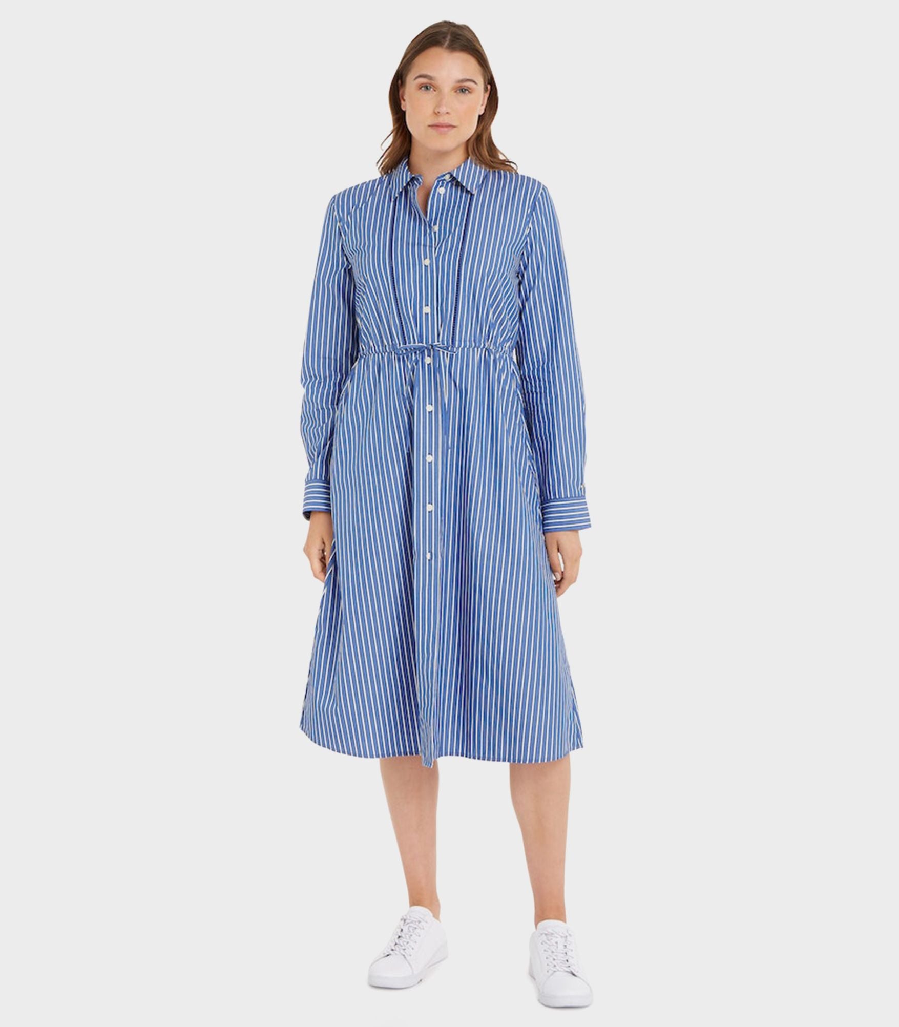 Tommy hilfiger - org co stripe midi shirt-dress , 36 , nola stp/ desert sky , style ww0ww37955