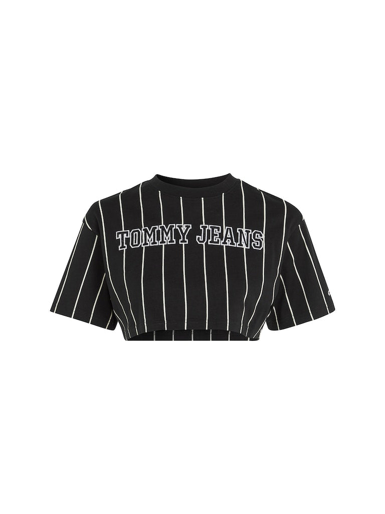 Tommy hilfiger jeans - tjw sp crp pinstripe tee , m , pinstripe print , style dw0dw15464