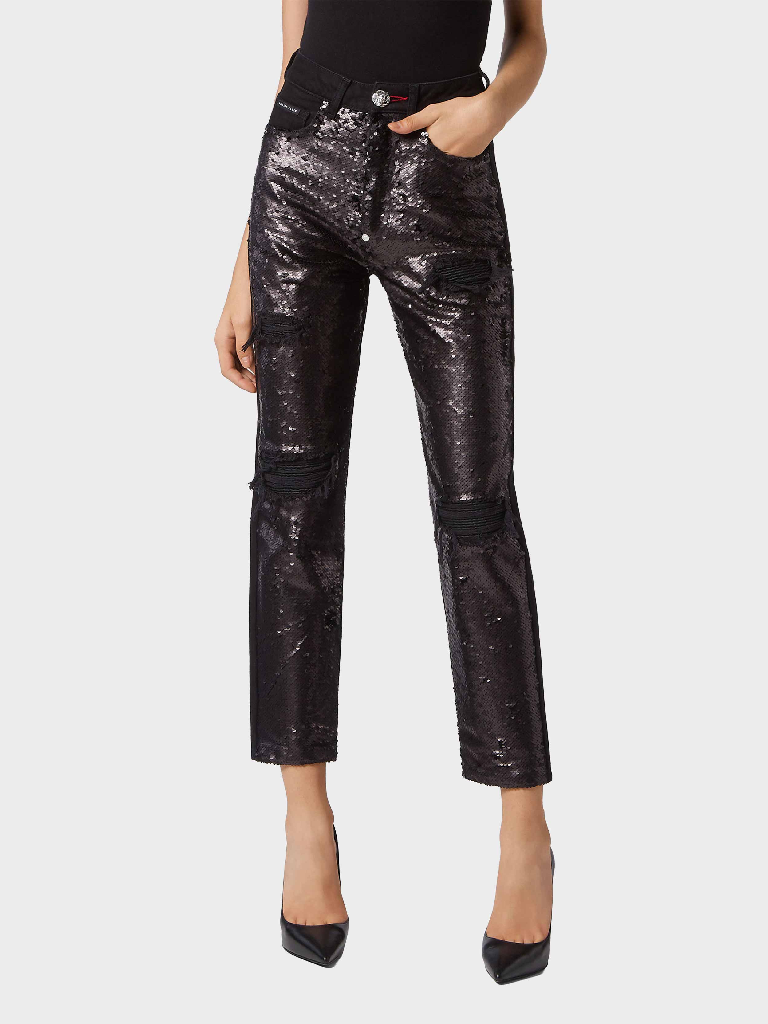 Philipp Plein - Women's Denim Trousers Boyfriend Paillettes