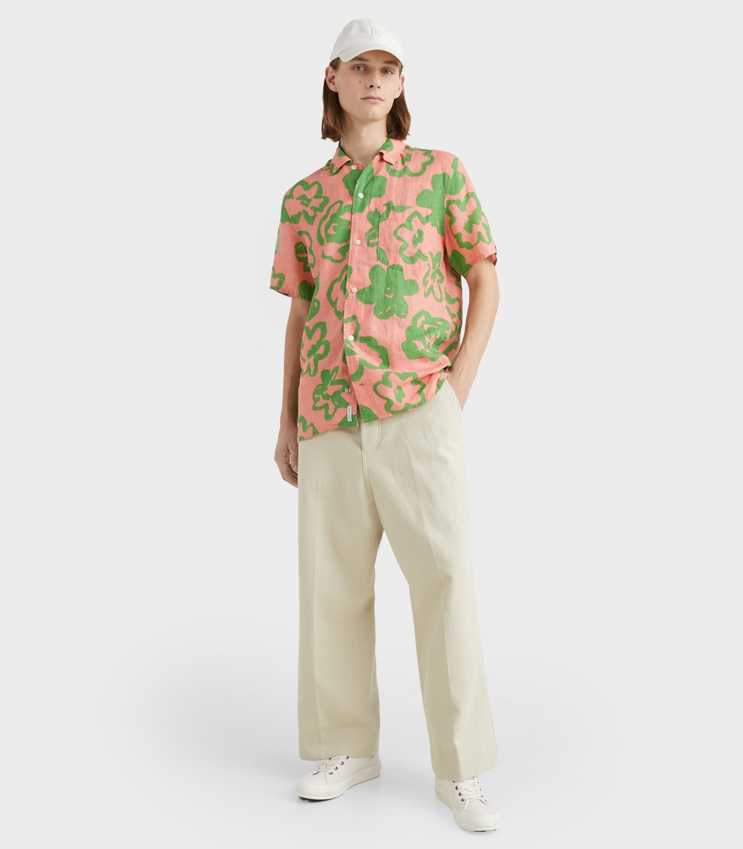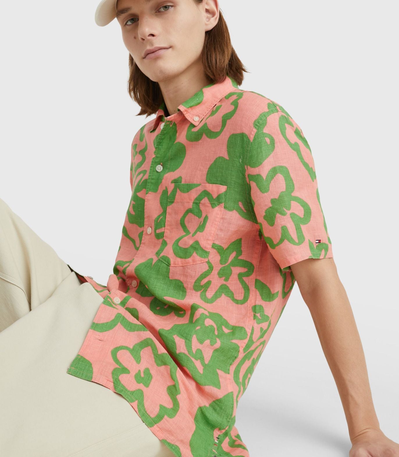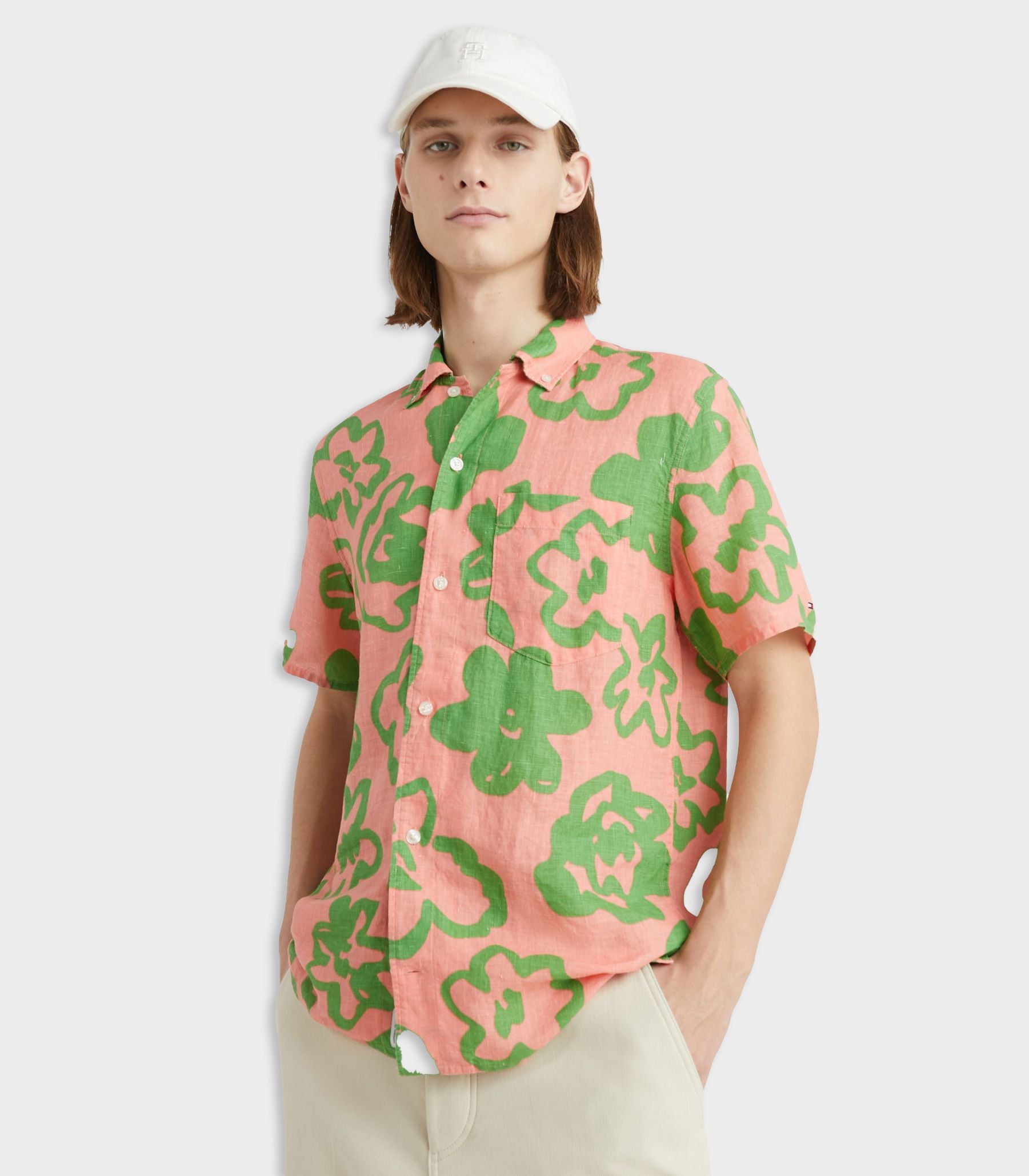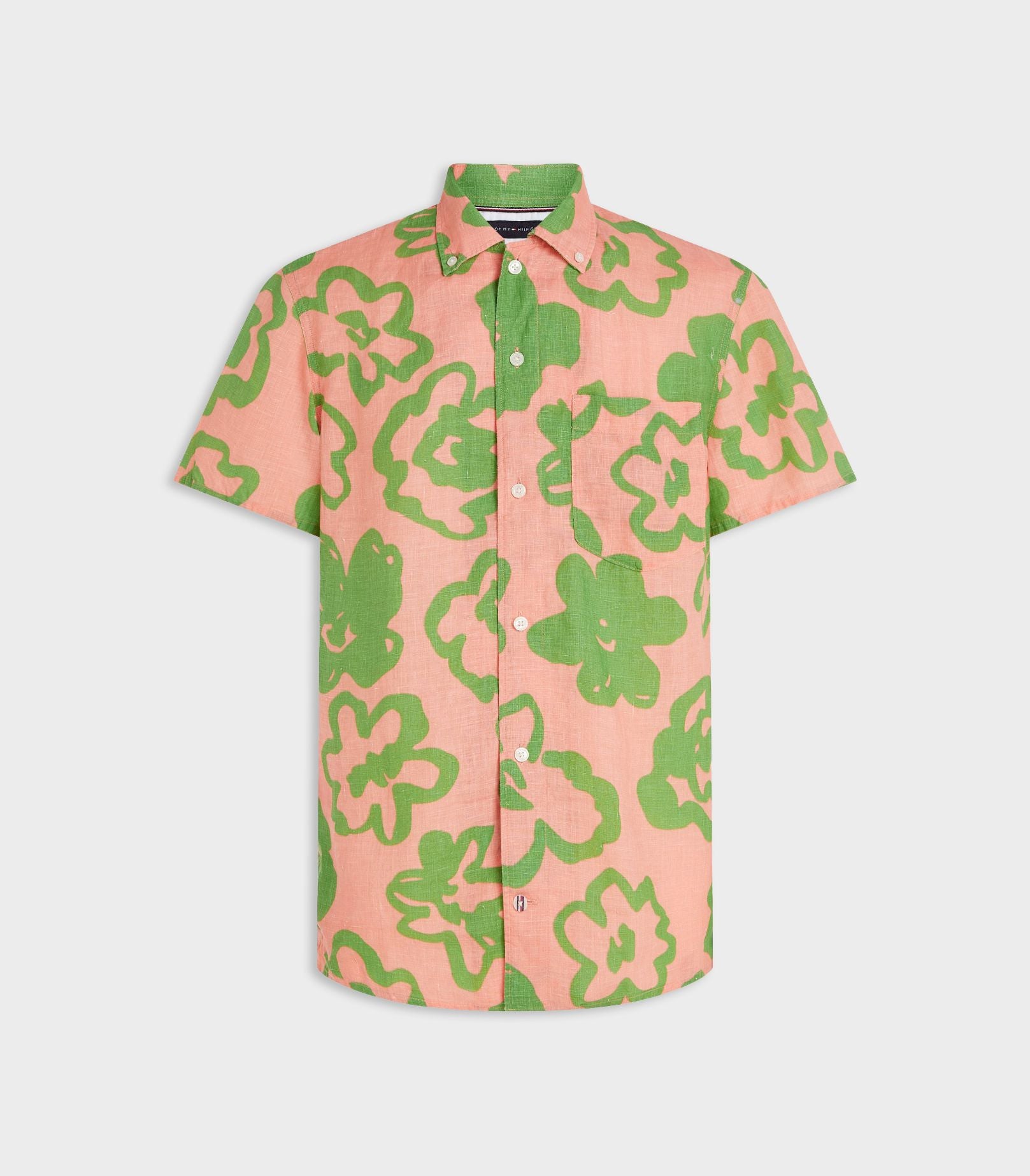 • Tommy Hilfiger - Floral Print Short Sleeve Linen Regular Fit Shirt