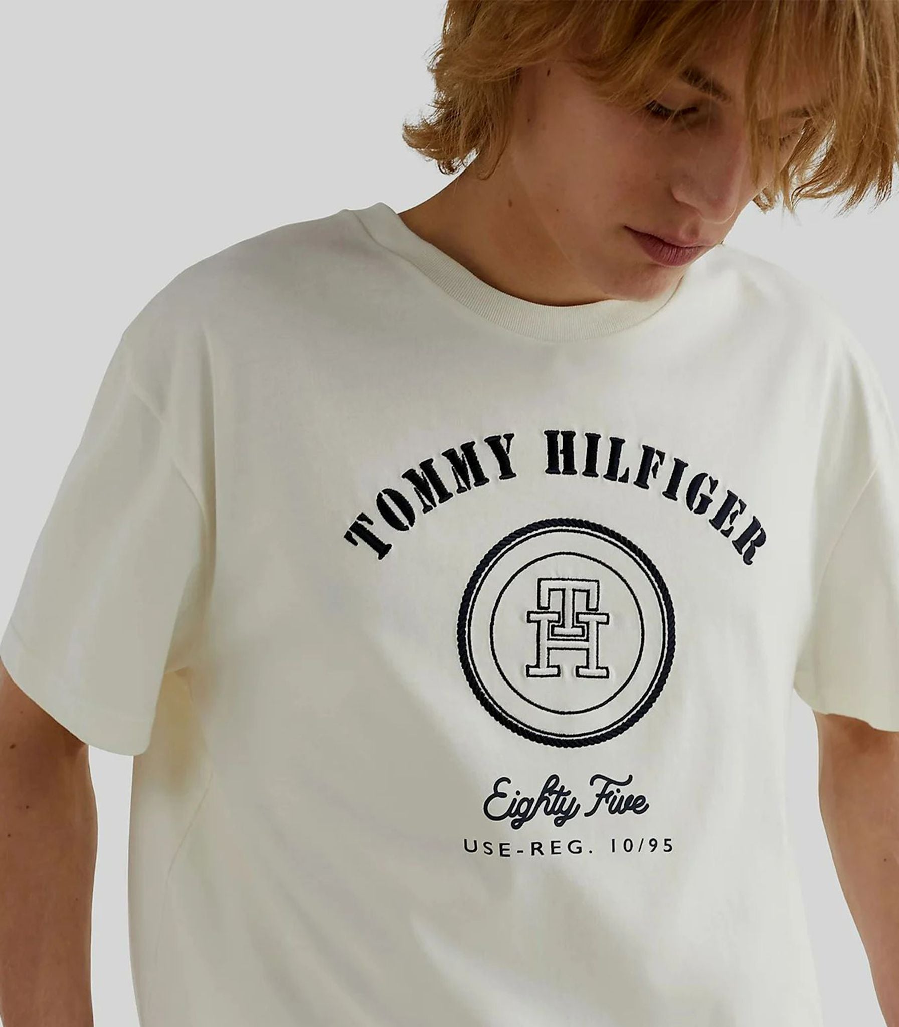 Tommy hilfiger - thl relaxed graphic tee , m , ecru , style mw0mw31065