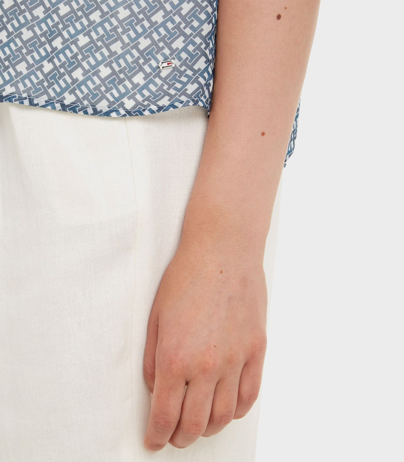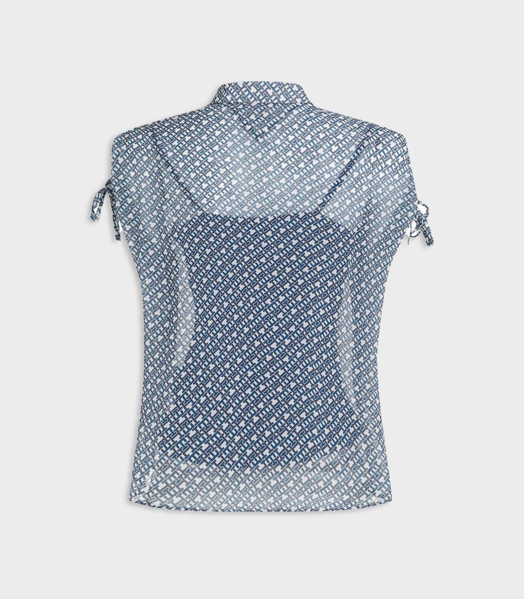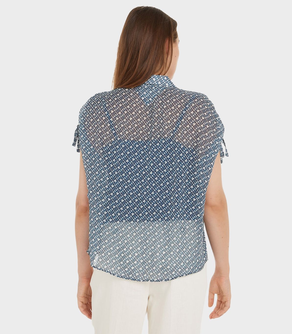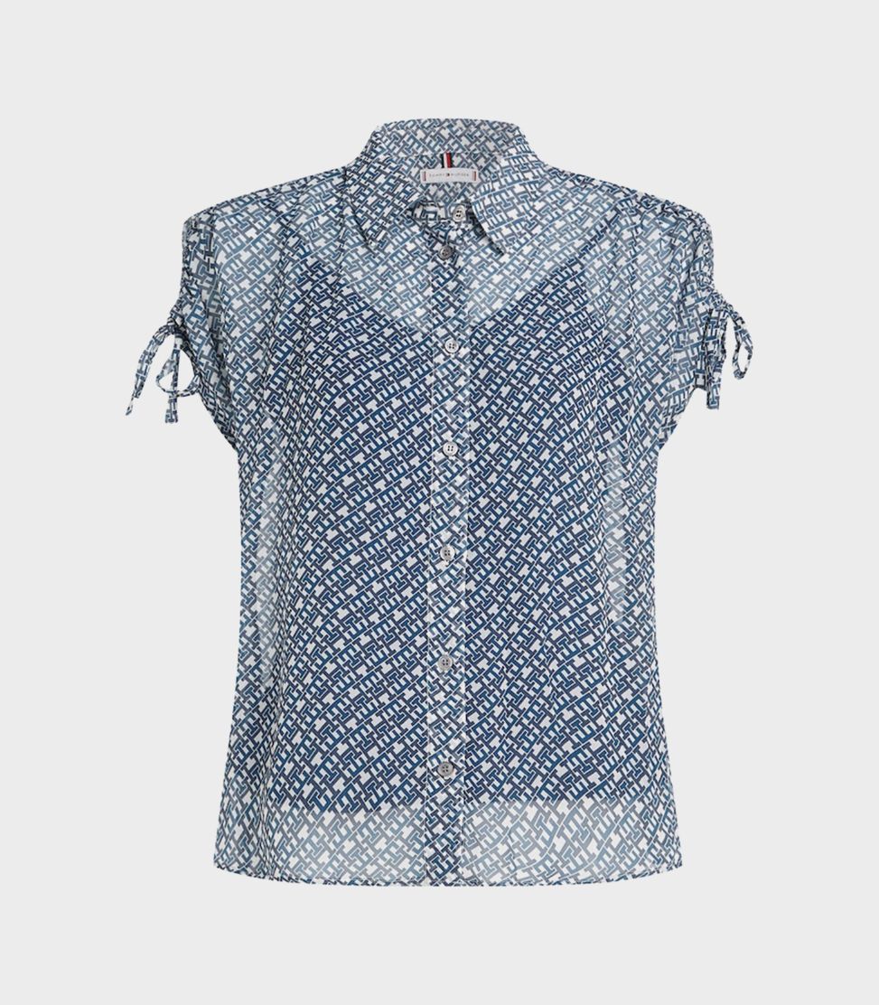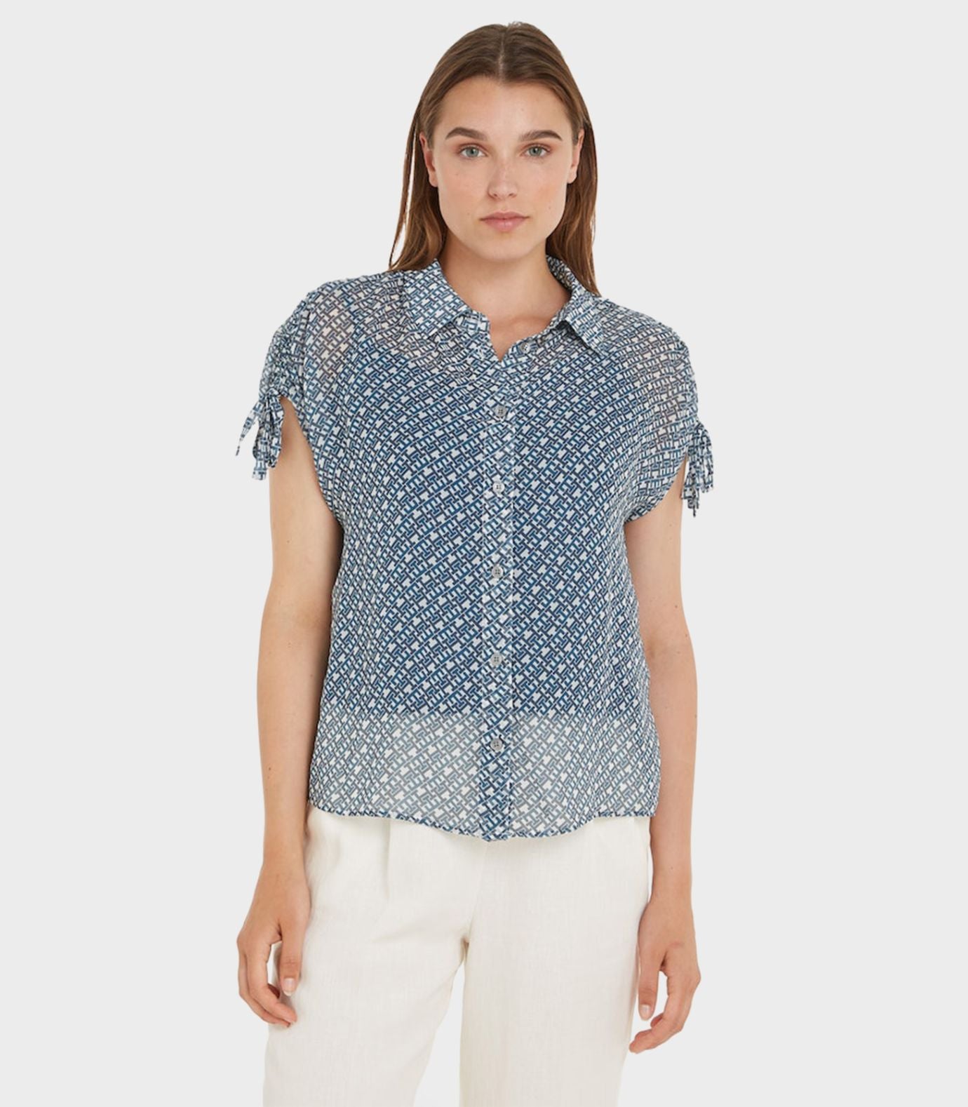 Tommy hilfiger - amd aop chiffon top ss , 40 , mini wsw monogram blue coast , style ww0ww38626