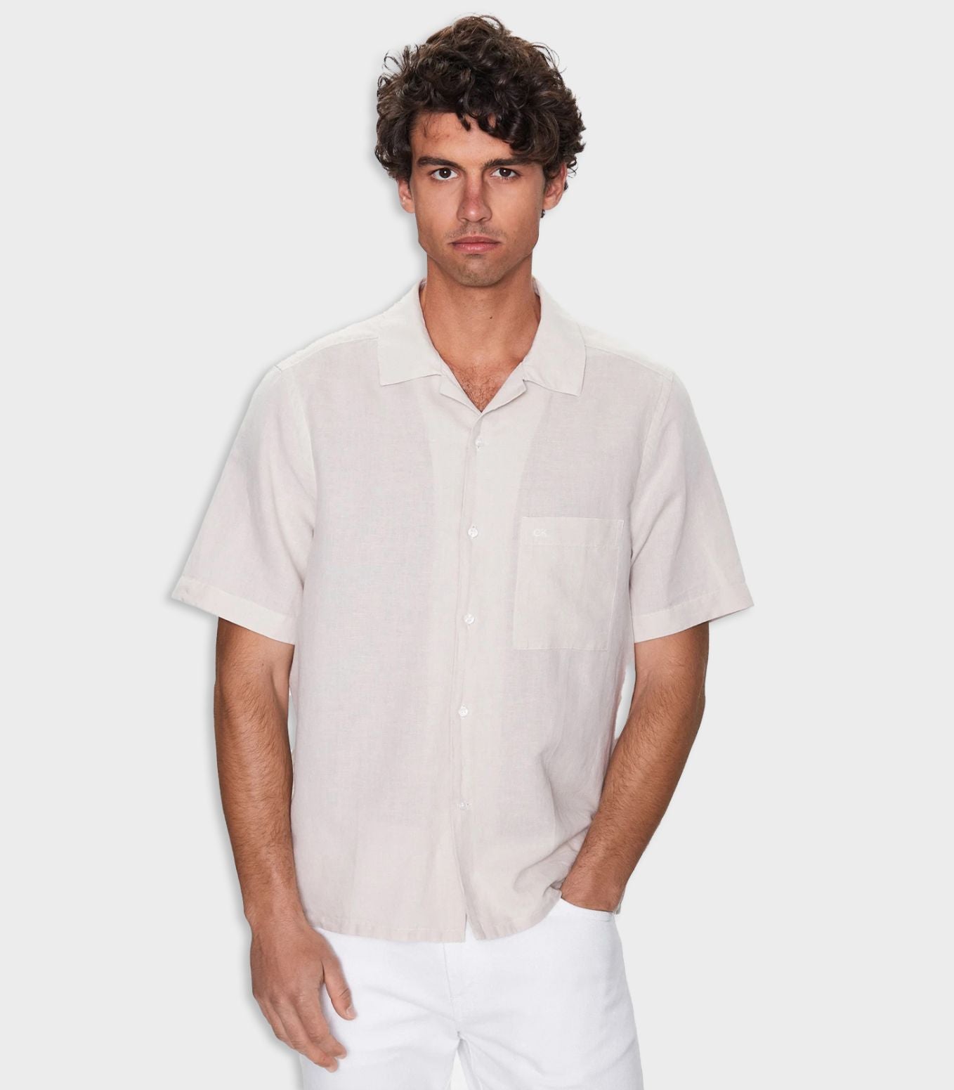 Calvin klein - linen cotton cuban s/s shirt , xl , stony beige , style k10k109521