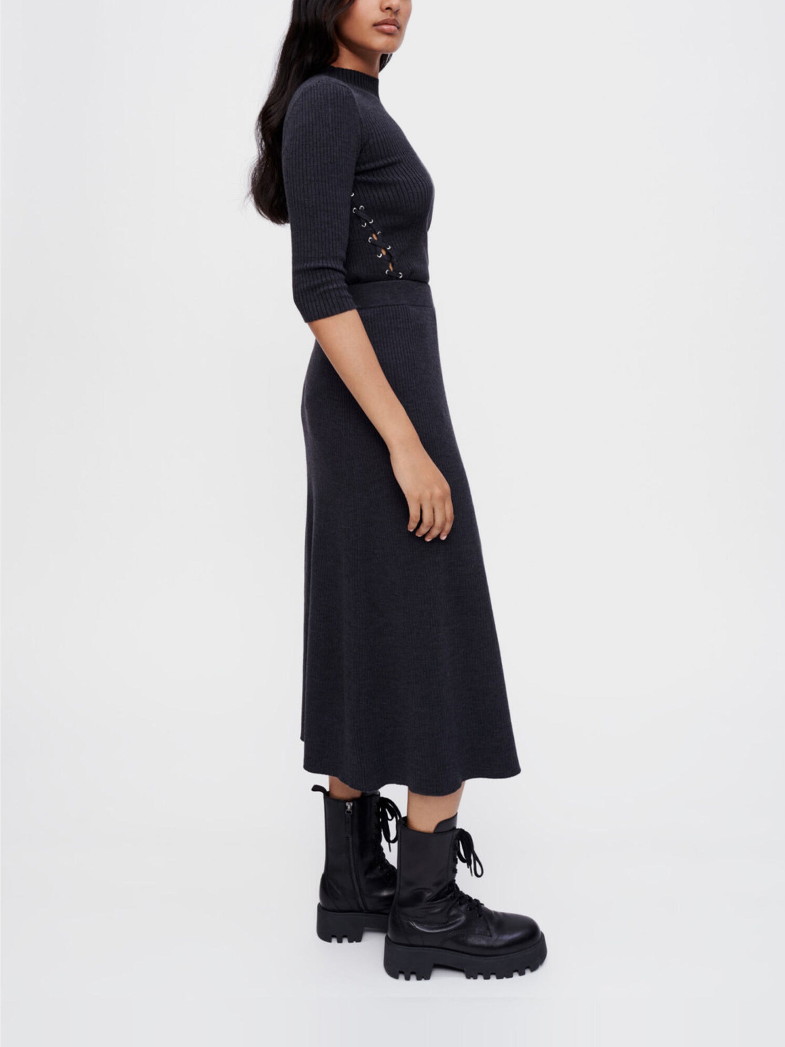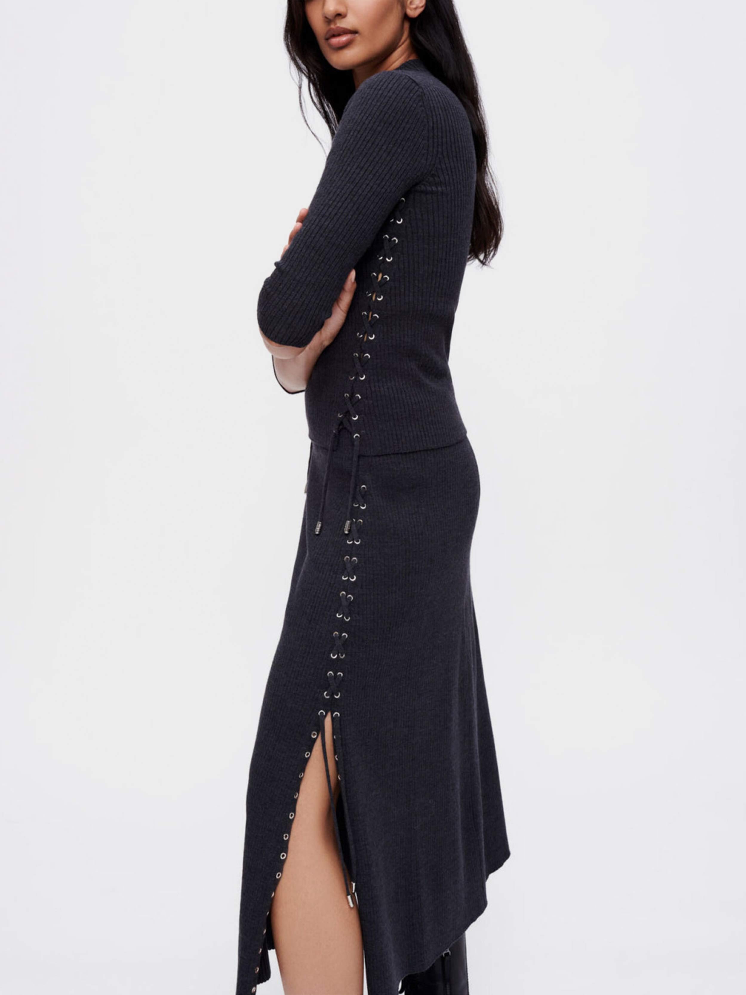 • Maje - Women's Midi Skirt In Silver Eyelet Knit