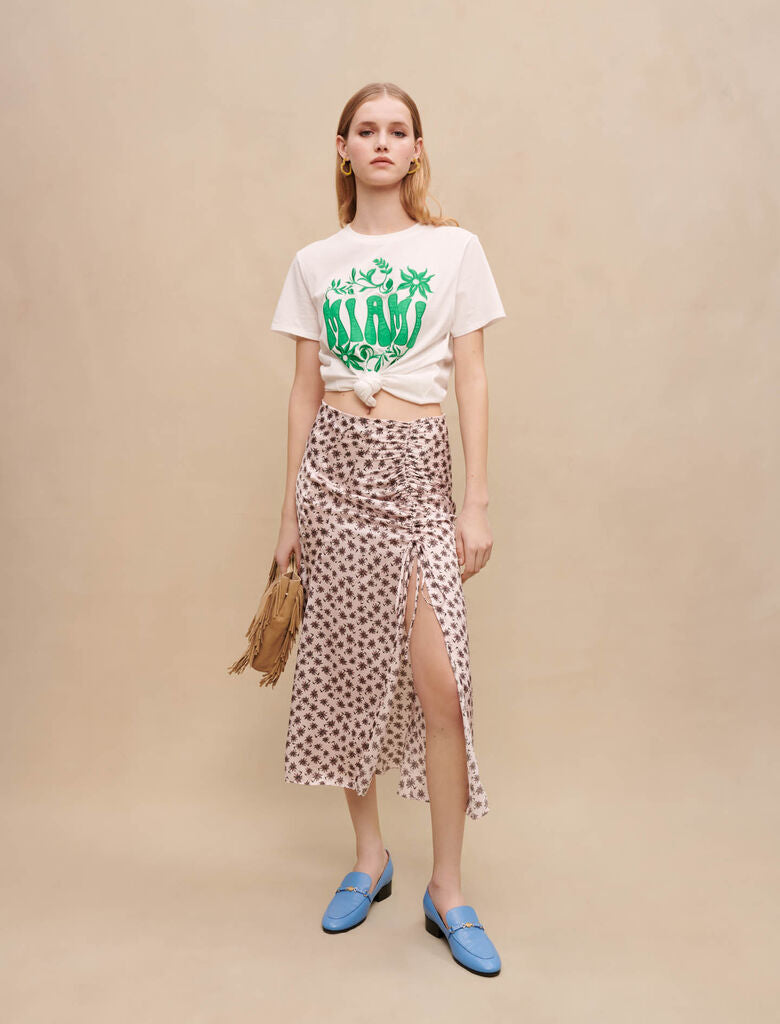 Maje - Palm Tree-Print Ruched Midi Skirt