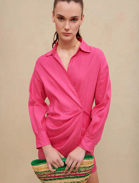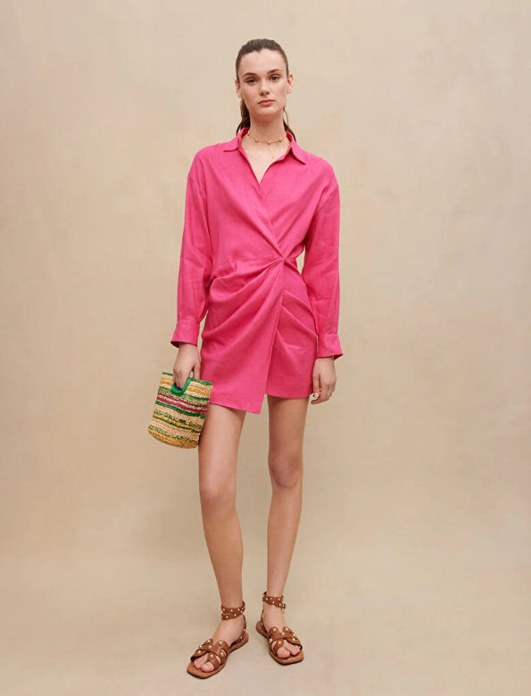 • This wrap dress features an asymmetric panel at the waist, wrap neckline and long sleeves with buttoned cuffs for a stylish, lightweight look. It can be paired with sandals for special occasions.