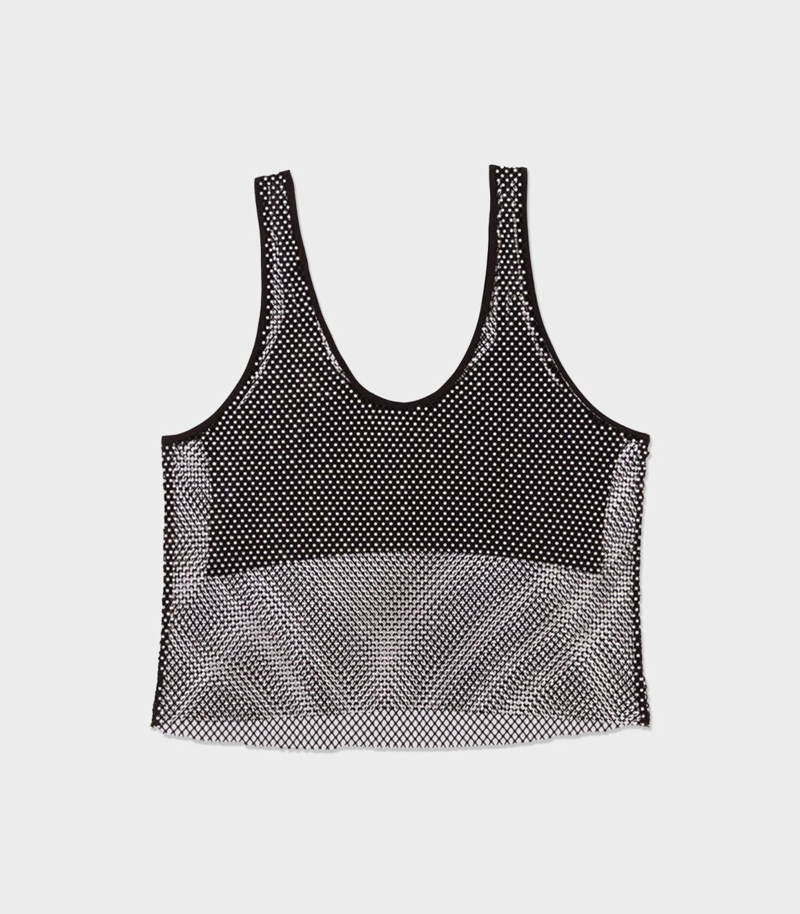 • This top features a crop-top style undergarment and sleeveless top covered entirely with diamanté. This festive piece is the perfect evening style.