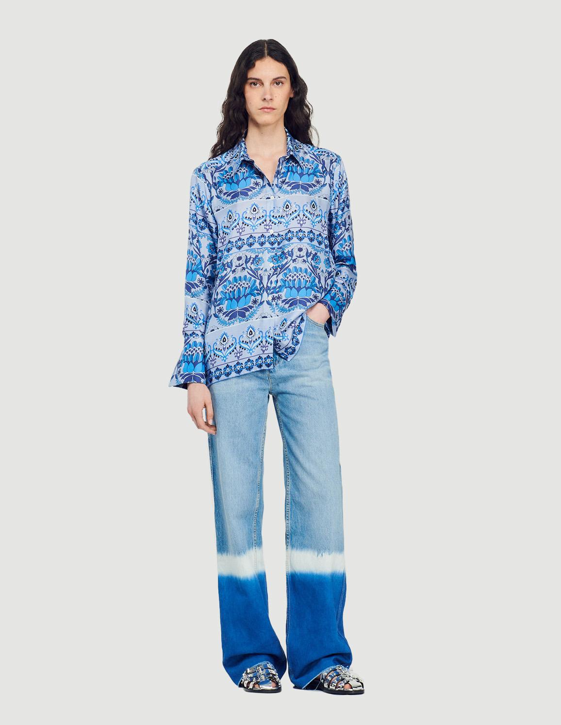 • Silk shirt decorated with scarf print, featuring long sleeves and a button fastening.